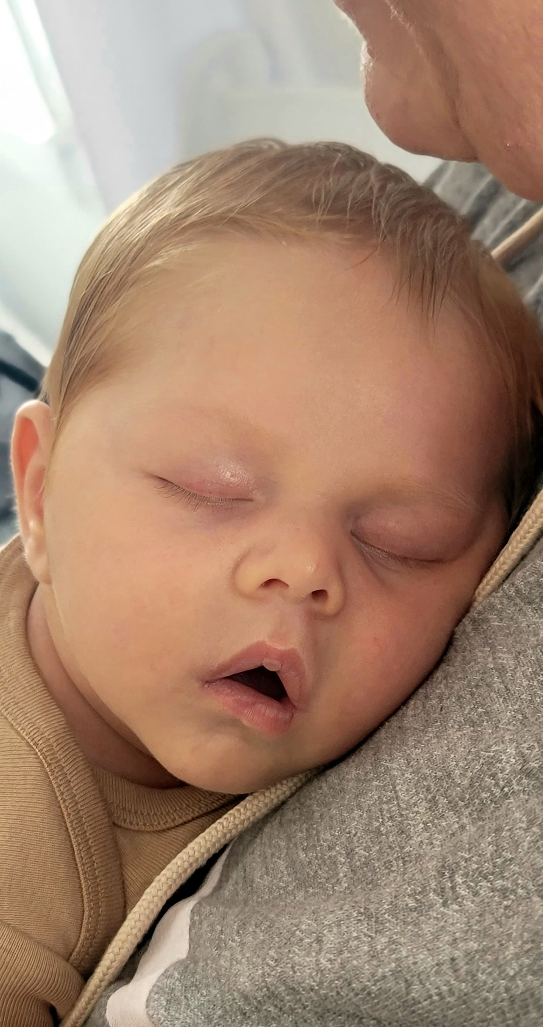 Then she looks closer and grabs her phone scrolling through pix…she apparently thinks he looks like her friend’s s baby boy born this summer.