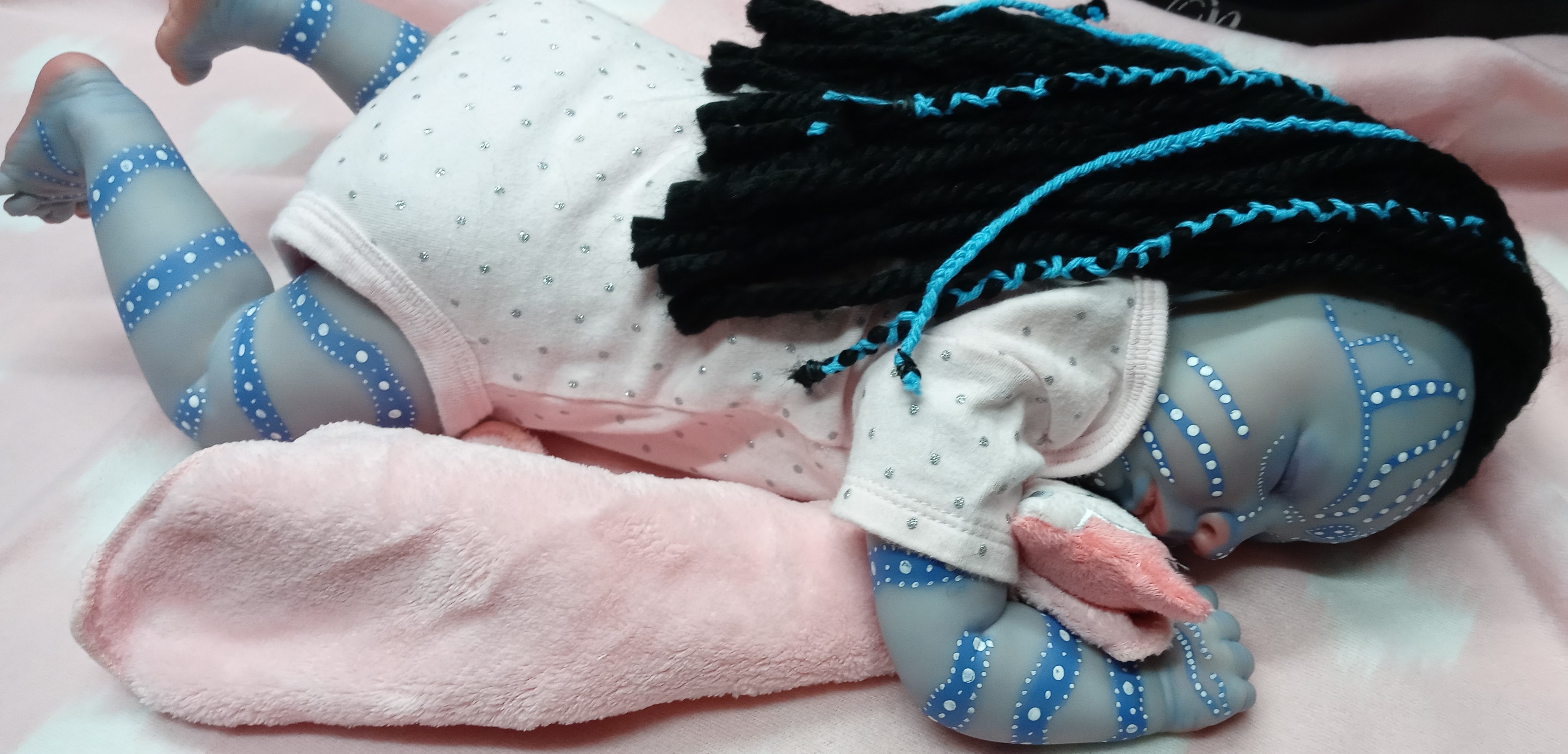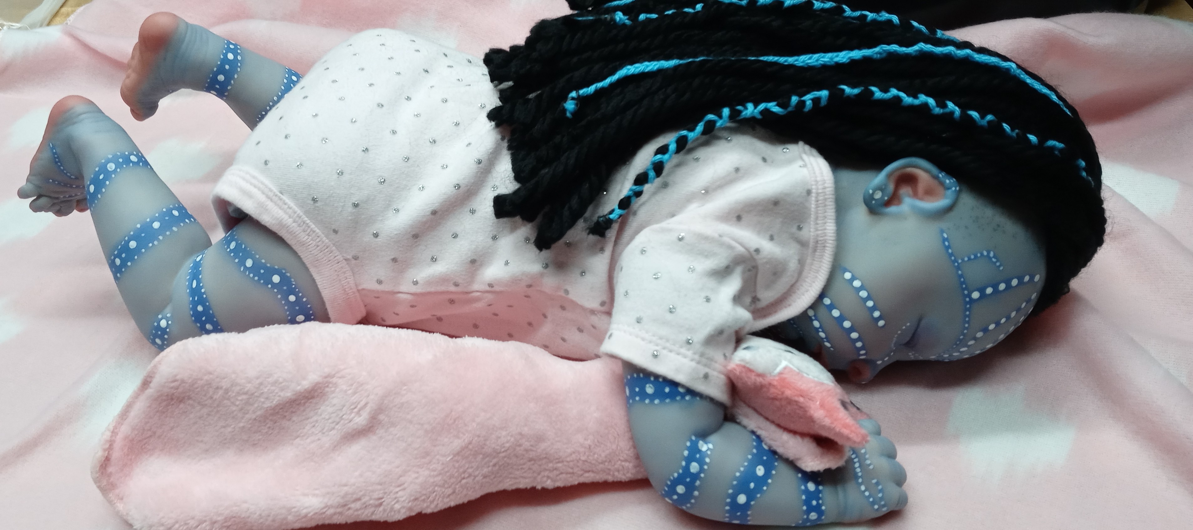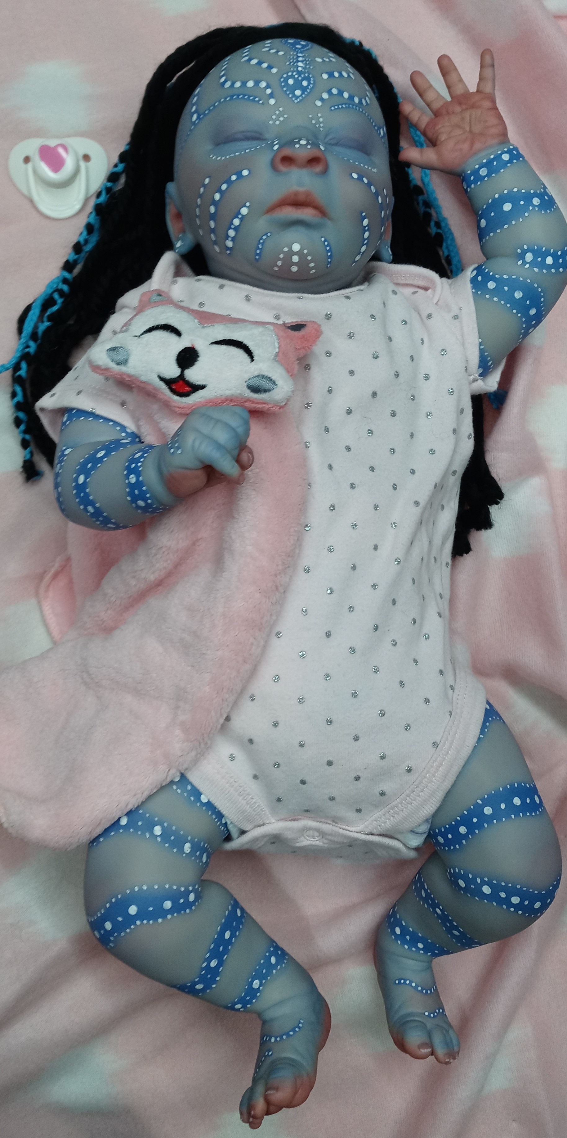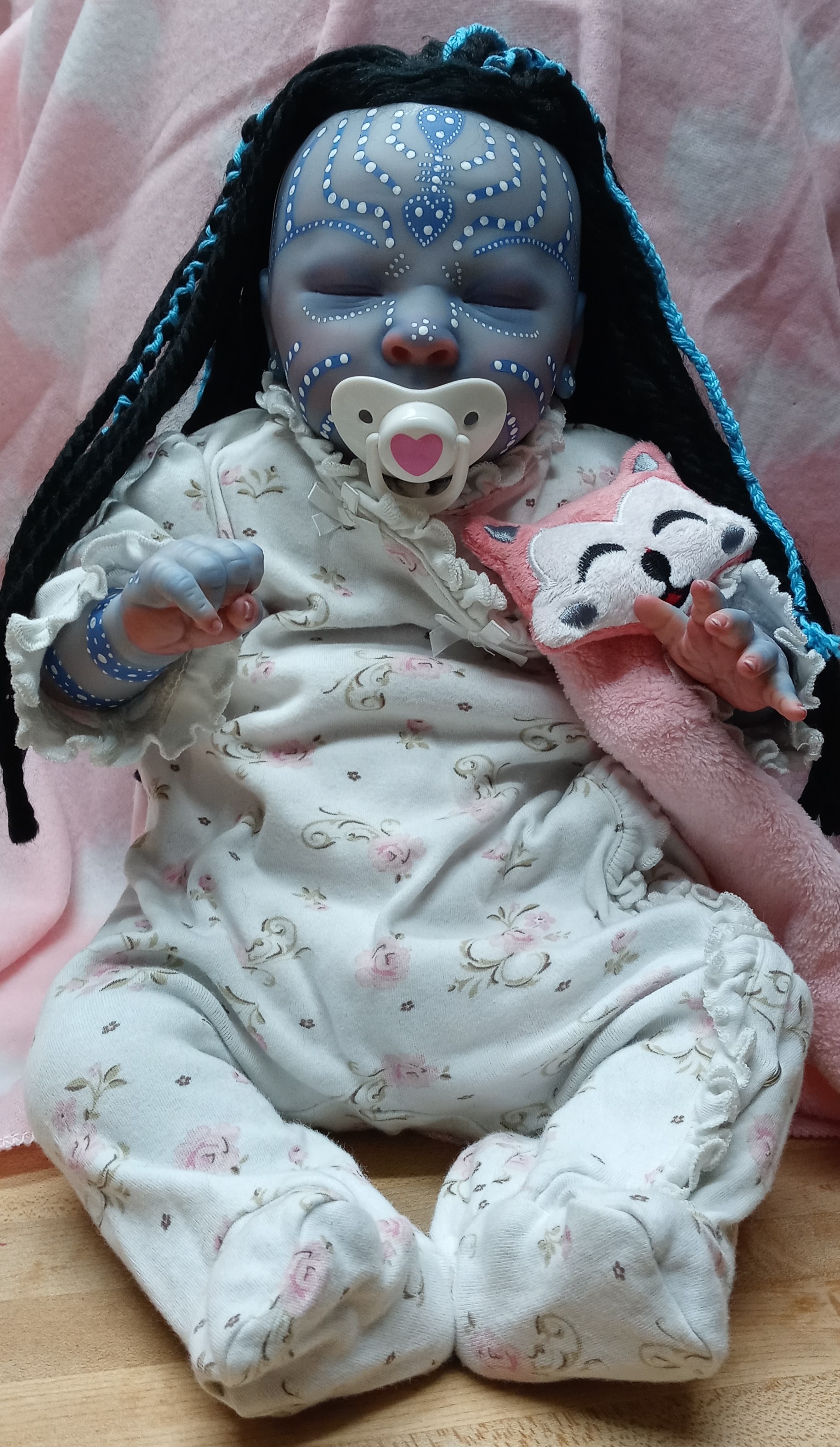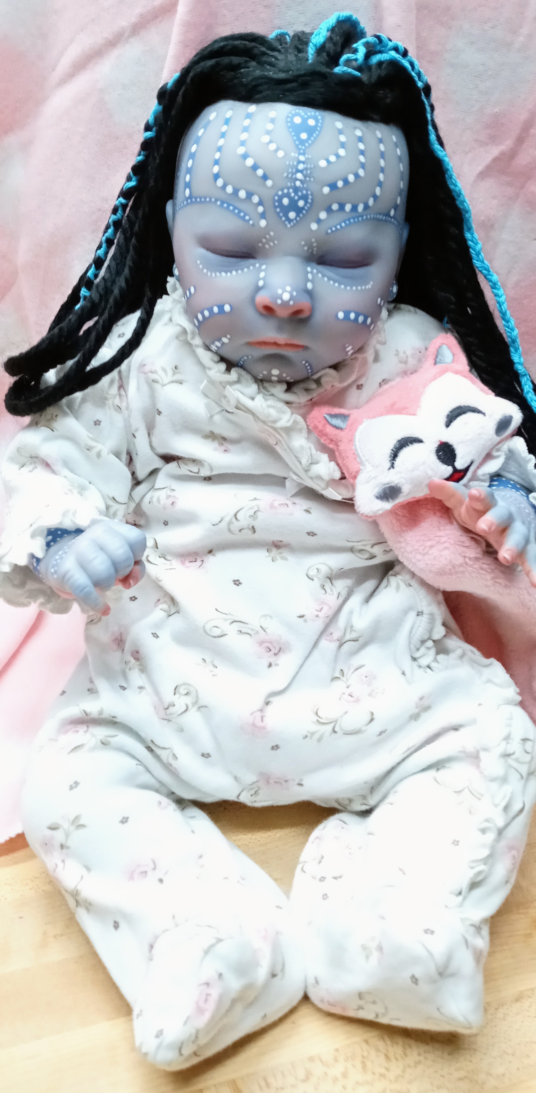 I am usually not a fan as well, however I agree! You can tell how much work was put into this, and uniquely done. The hair itself…I personally have never seen a reborn with hair like that, and that makes it so much more unique!