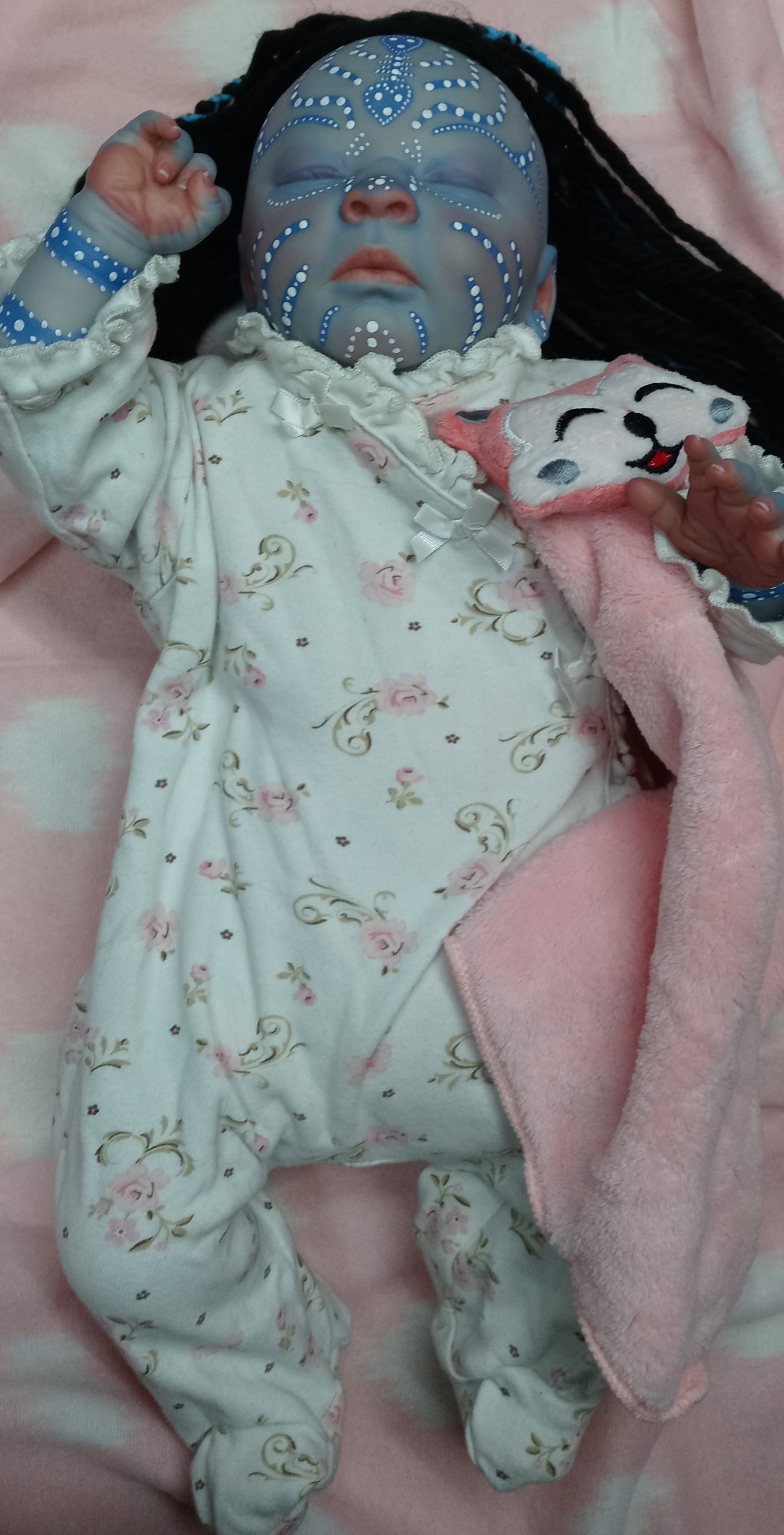 Due to ALL of your love, support and encouragement…the beautiful N’veyah has been born. I chose her name because I not only wanted something meaningful (Heaven backwards is Nevaeh), but I also wanted to be able to change the spelling to look more Na’vi like. I hope you enjoy my attempt at trying to do photos…I’m horrible at this part…painting is much easier. lol