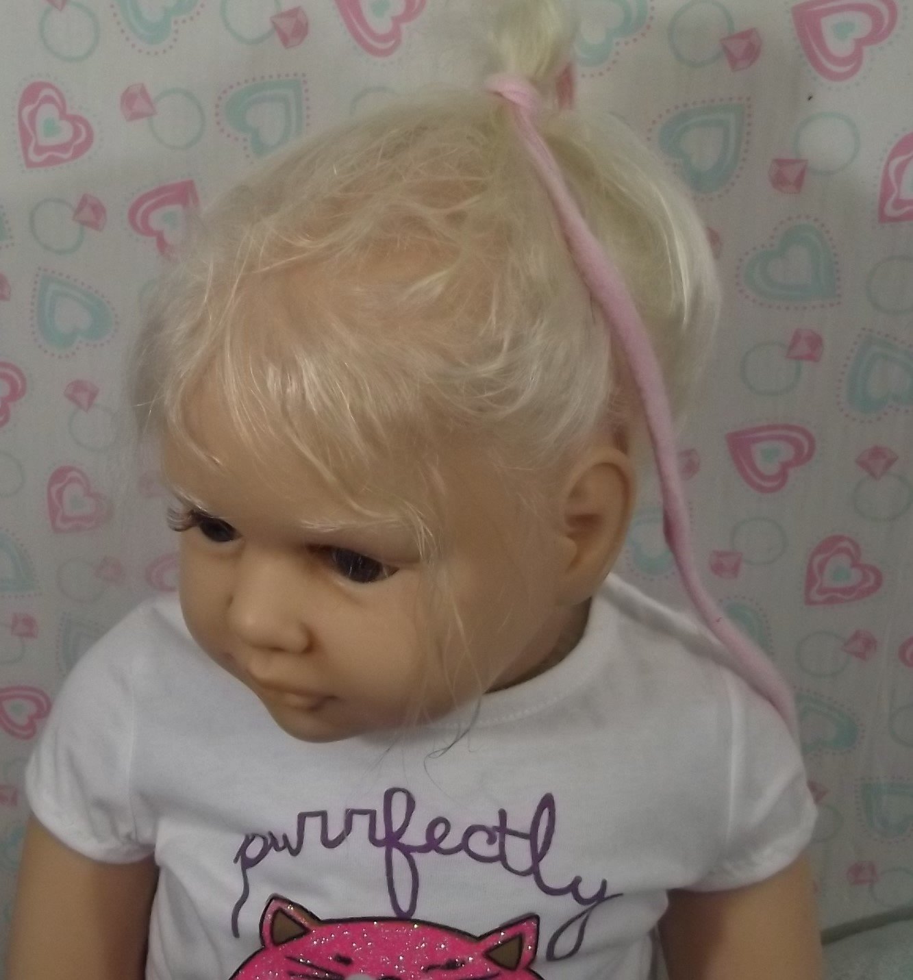 OK, I think this is a different person from whom I bought my mohair. Her name is not Olga but Victoria. I thought I used a link but may have stumbled onto a different site. I got mine from someone in Russia through Etsy. I’m not complaining. As I said, it is beautiful hair and really reasonable. This is the picture from the ad and the picture of the doll I rooted with it.