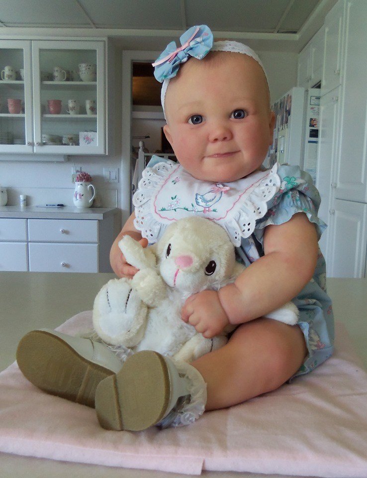 Here is the finished baby all dressed in the 8828 body she went home with. Her Mom put this outfit on her and it is a 6-9 mos size.