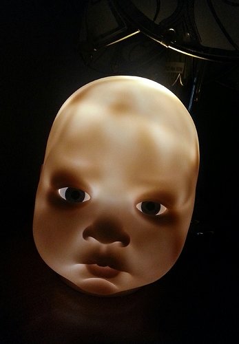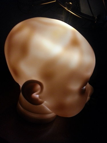 Re those denser hard spots…I put a small torch inside the head of Lulu before doing her hair, and this is the resulting pic. It seems to show the denser spots. Kinda spooky pic tho.