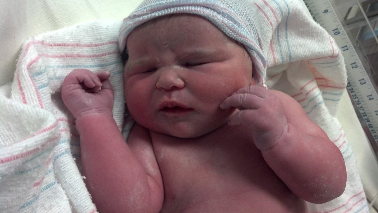 Pic is him 5 hours old has a head of hair but not like the pic she sent me but a few do…