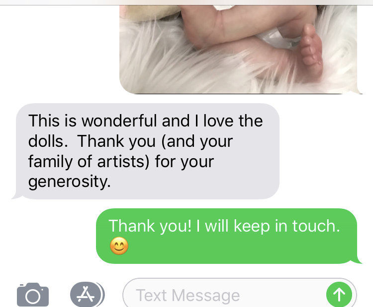 Thank you @AnnieSokay! My heart is so full right now. I am so grateful for you all and overwhelmed by the volunteers to donate a baby. I know how much we put into these dolls and it truly is an act of love to give one away. I’ve seen the smile a special gift can give to a child whose been pretty much broken down, and there is nothing like it. It’s why I do what I do. We can’t change their circumstances, but we can help to make them a little better. I give my promise that these babies will probably be loved more than any baby you have ever given before.