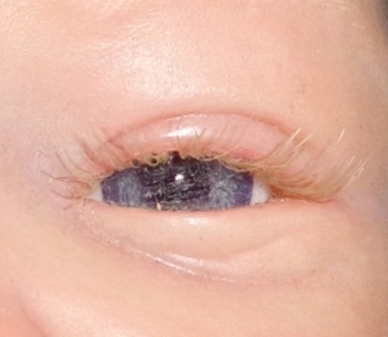 Here is a before and after…got one eye clean so didn’t have to replace it…hoping the other cleans up as well…I was trying to keep from having to replace the lashes because I don’t have any blonde ones in stock at the moment but think I am going to have to tell her that it will be a few days cause I need to order and replace the lashes. or do you think they look ok as is???