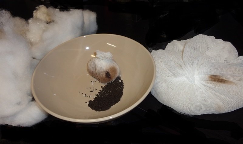 It is metal shot beads…as you can see they have rusted and had already started bleeding though the gauze. The shot was encased inside another gauze bag with poly pellets and as you can see, rust was already starting to bleed through the gauze and would have eventually stained the baby’s body if it had not been found at this stage…