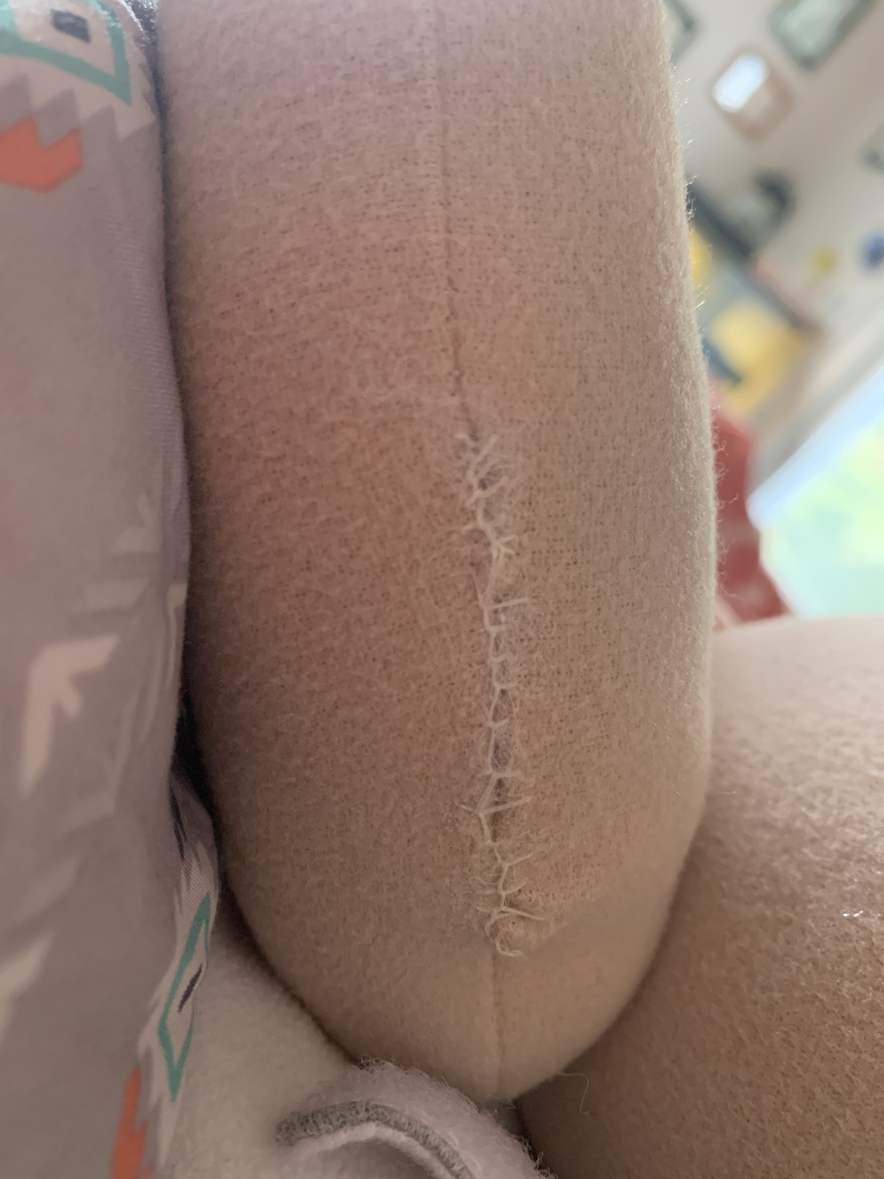As for your seams…that type of body has openings for the artist to fill the limbs. Then they hand sew the openings. It looks like the doll is just stuffed so full that it’s stressing the seams. But again…that’s what it takes to get a 5 pound cuddle baby.