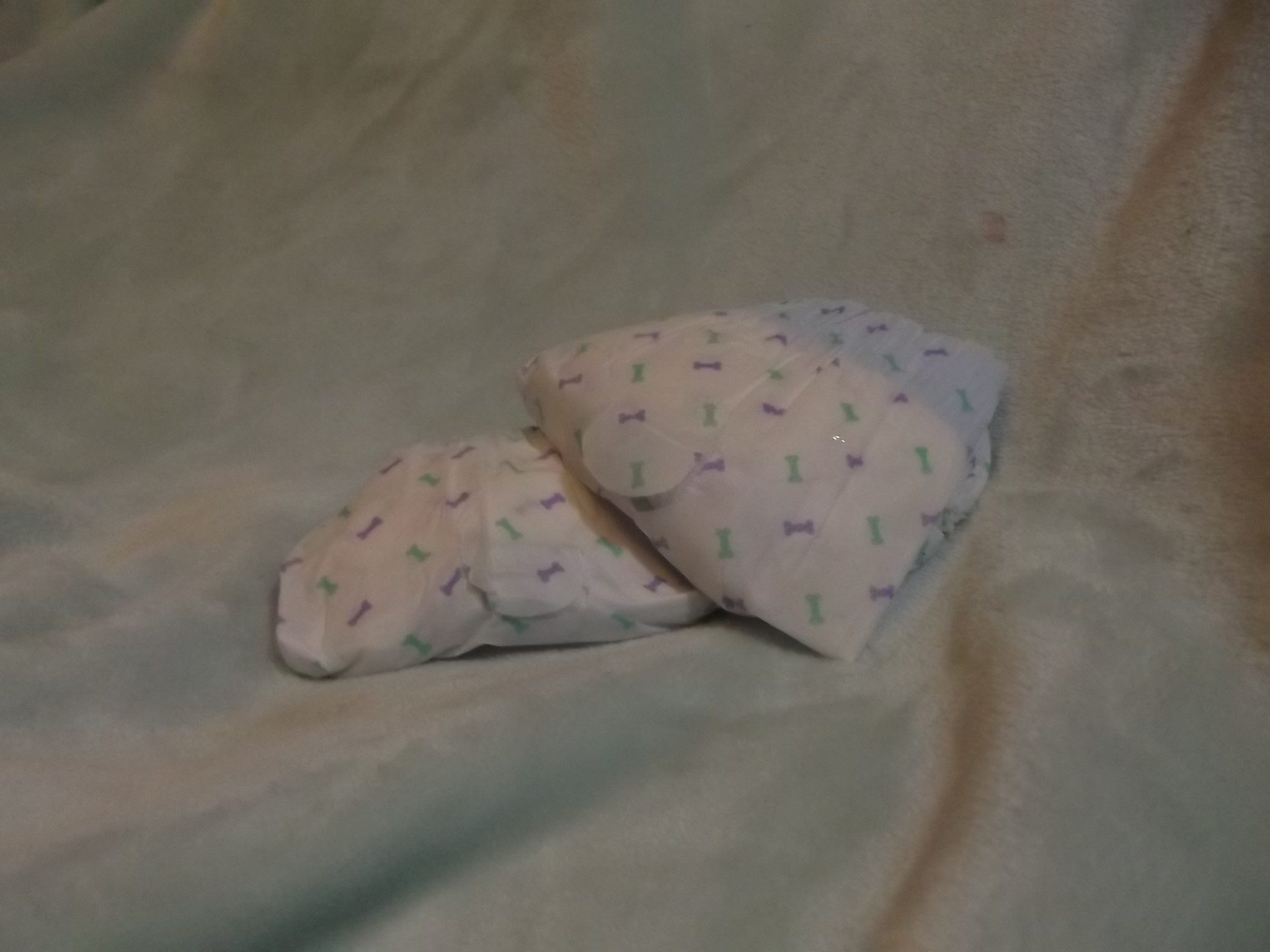 I came across some tiny puppy diapers today that are perfect for my drink and wet Binki. They have a hole for the tail. So cute!