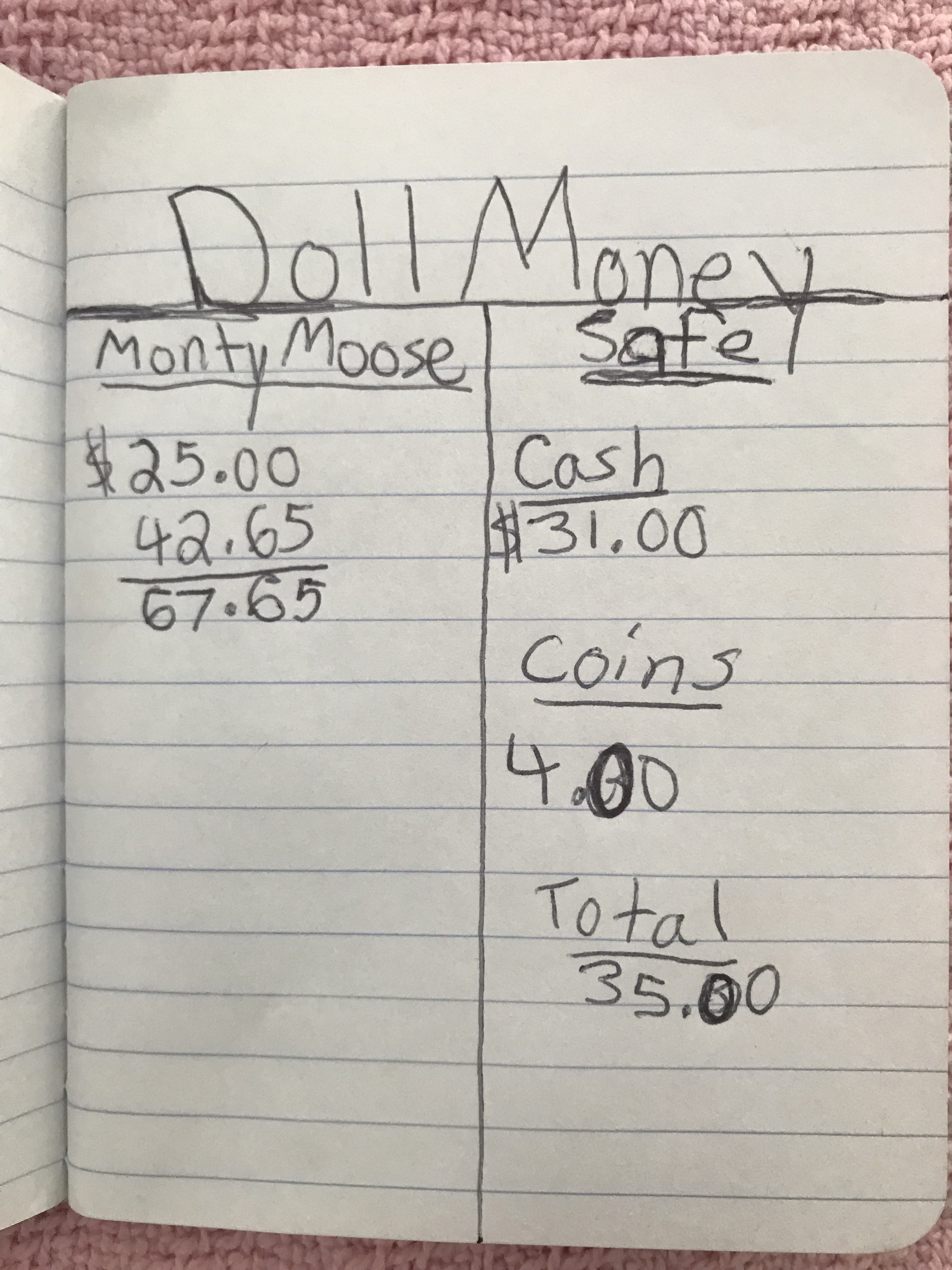 Found this while cleaning out my childhood home. Even nine year old me was doing calculations for dolly dollars