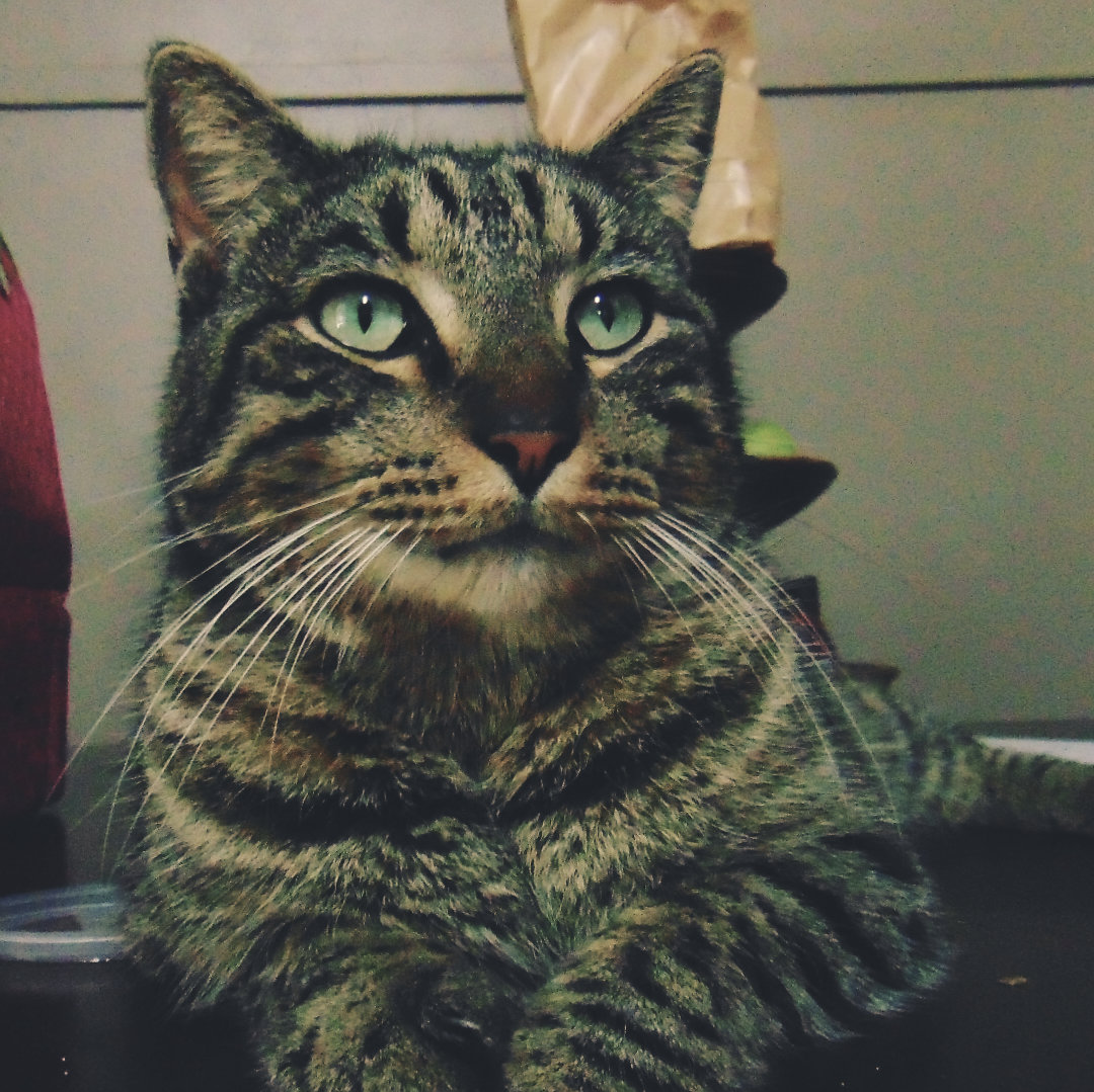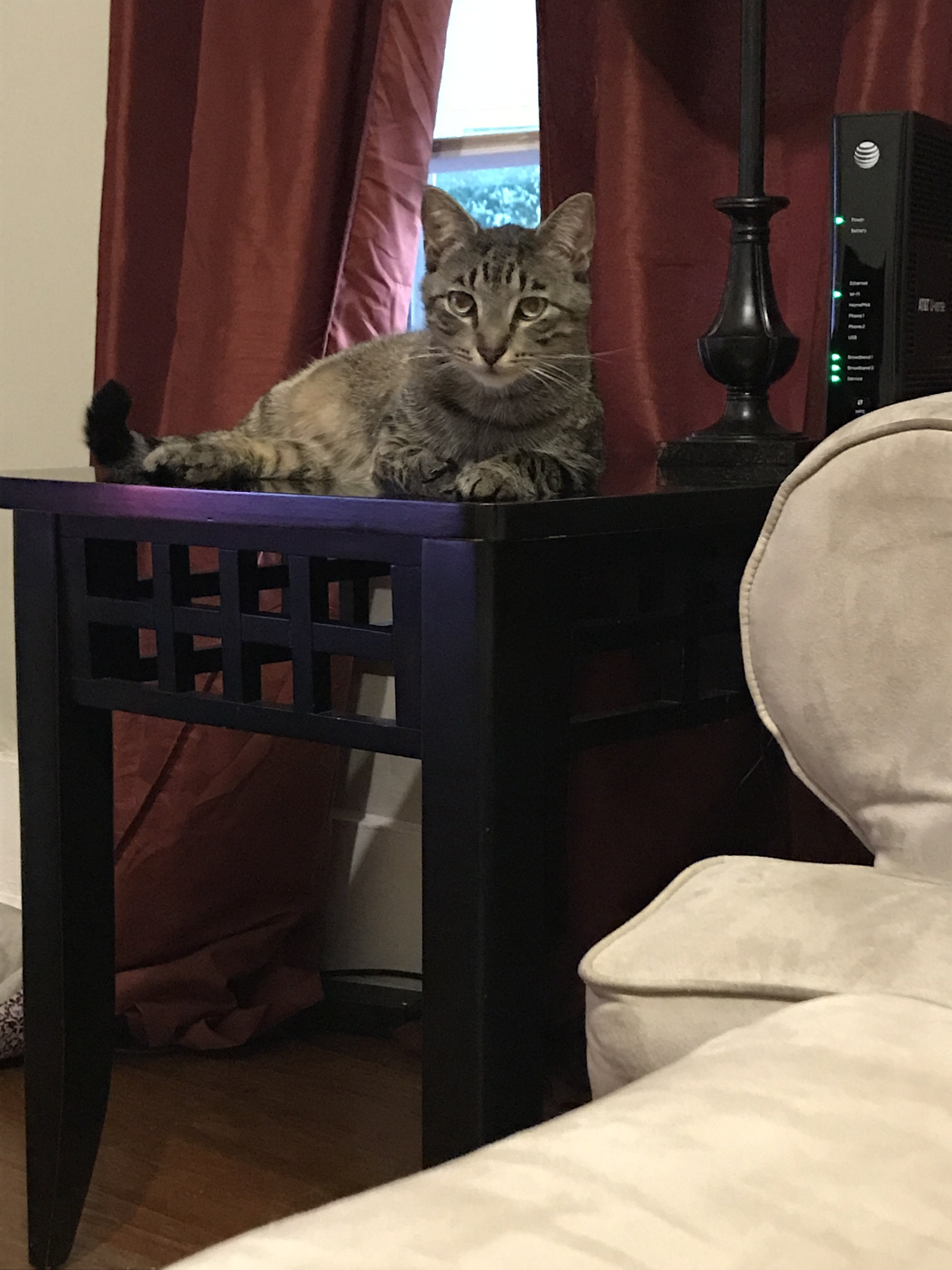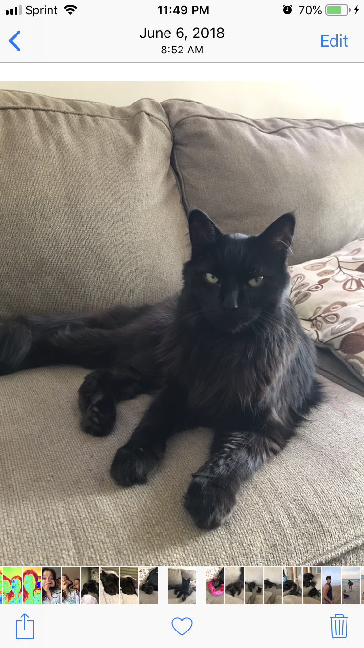 This is Kateriyna (Kat) she’s my daughter’s cat and she’s stuck with us still bc my daughter can’t keep her in the barracks.