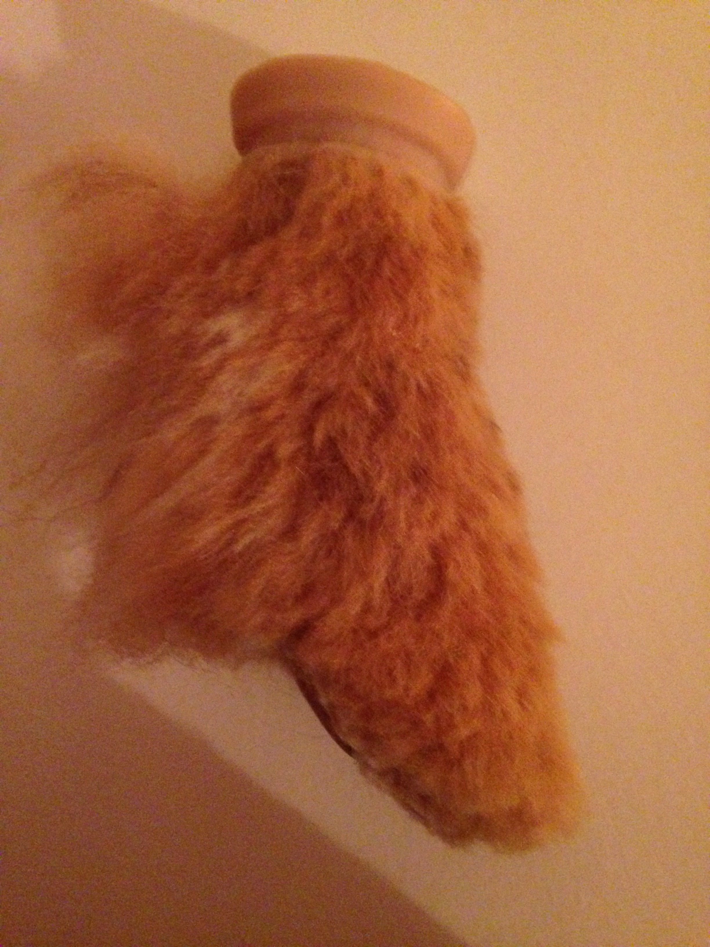 I have finally gotten all the vinyl parts rooted! I redid the face a little too and have managed to alter the fur to give a less flat shape. I couldn’t fix that much as it is what it is but it’s better and I’m happier with it.