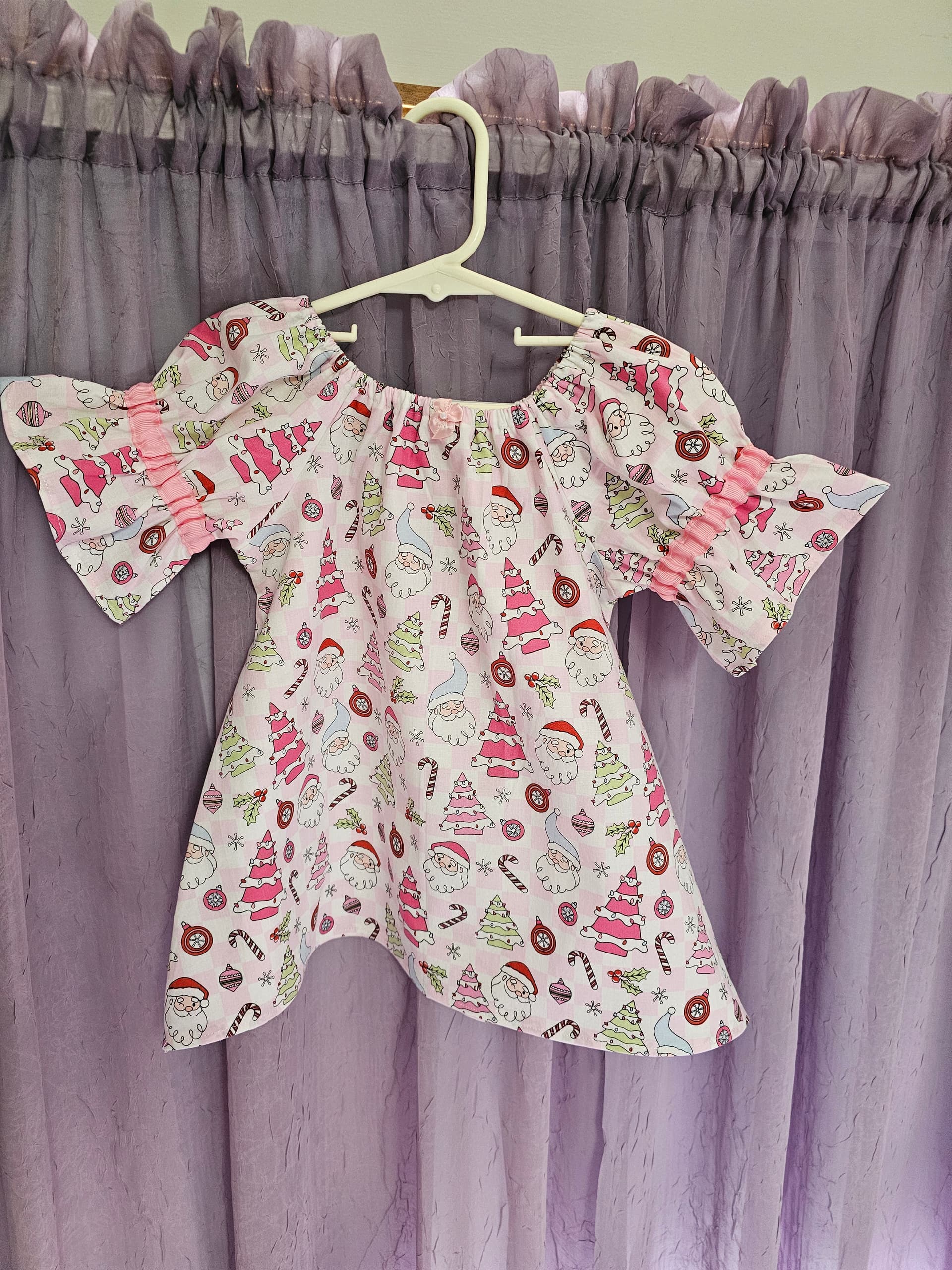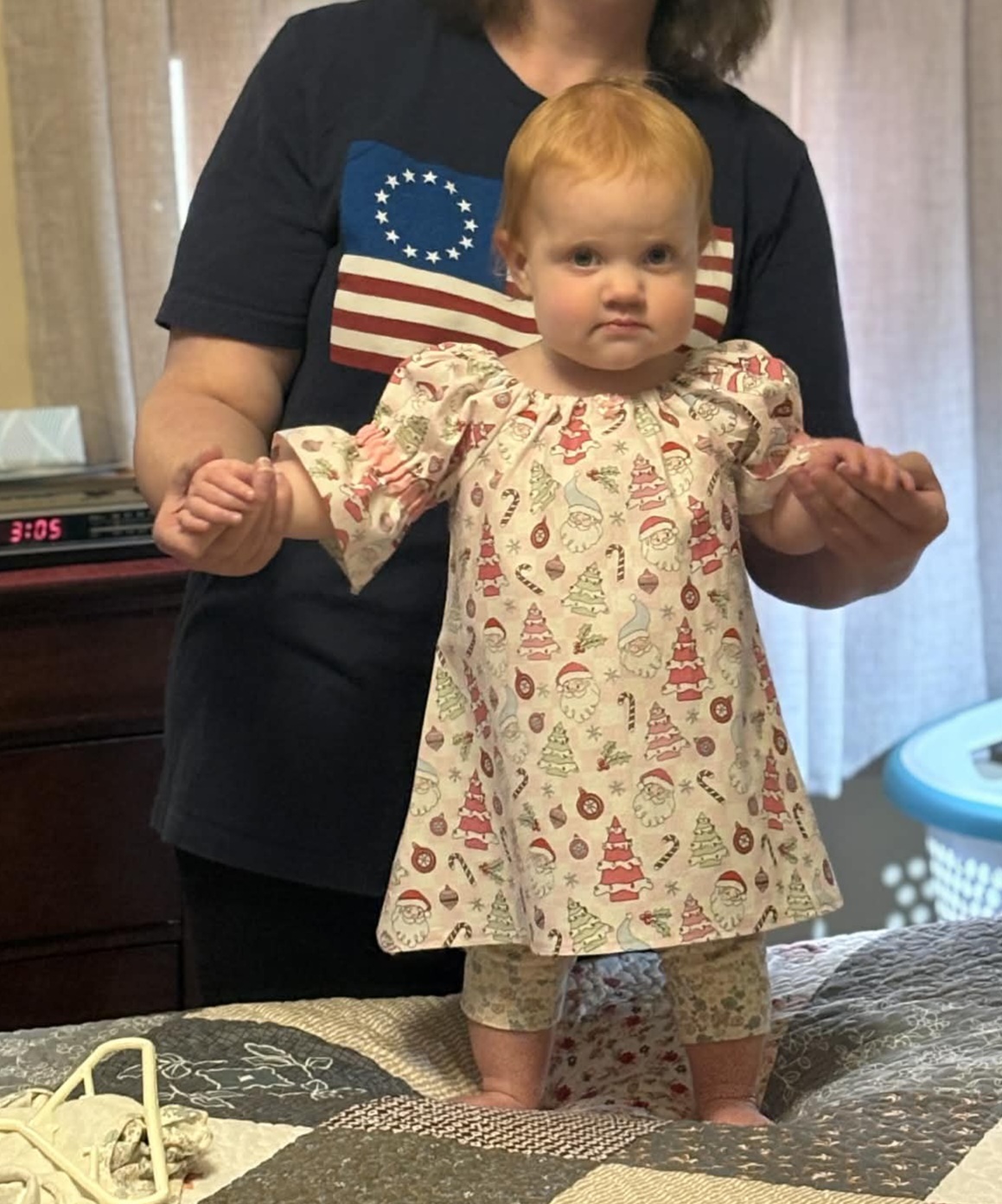 I finished the other dress. Had to alter the 2T pattern by guess work. I just nowctried itvon her over her pants and it is not a bad fit.