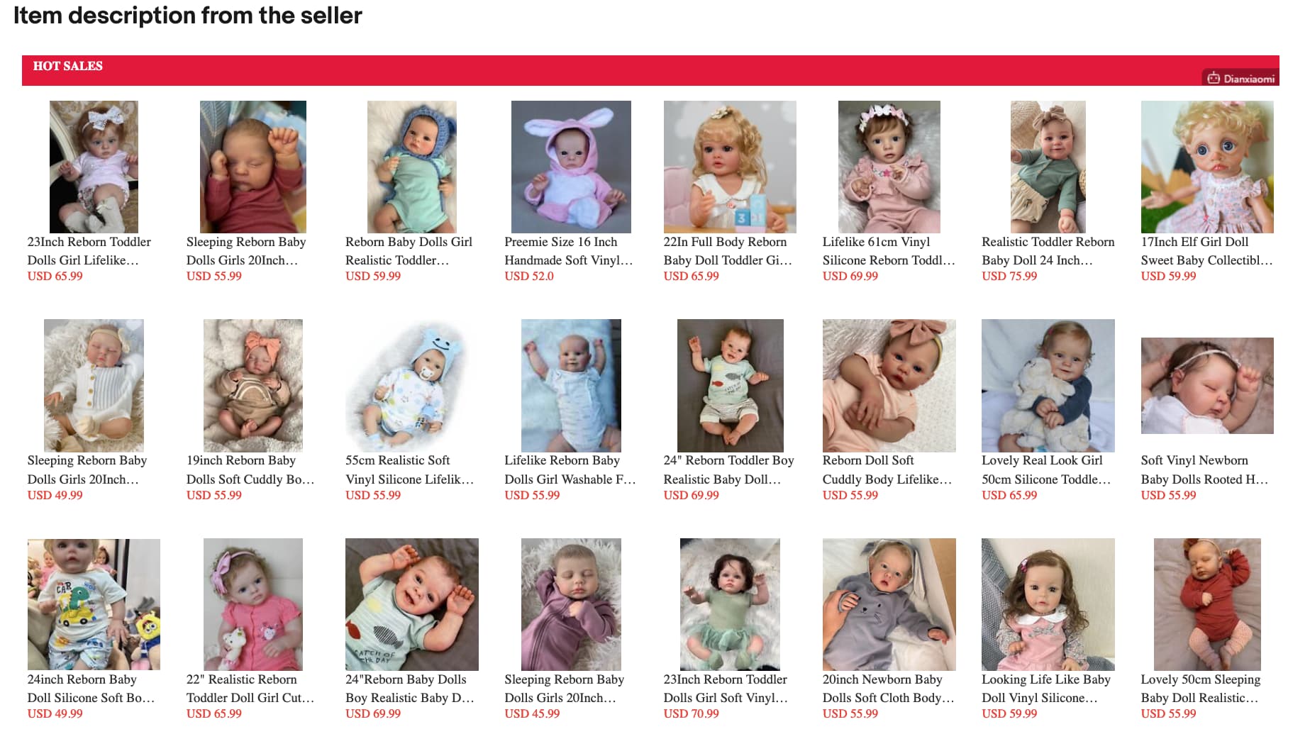 The person/people who reborned these babies are also being used by having their work represented as someone else’s.