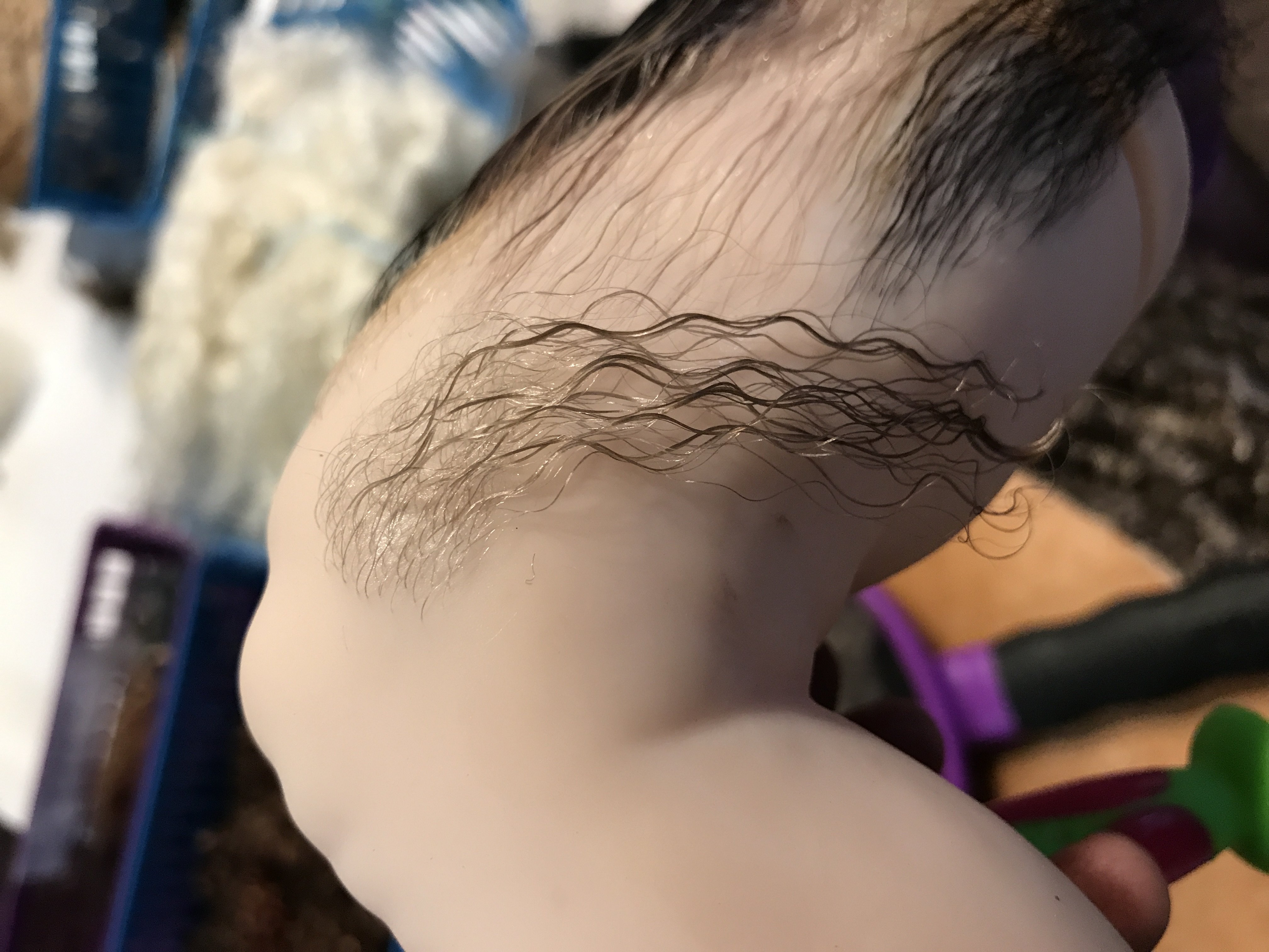 I have yet to root the bluish/purpe hair i bought from you for the Fei Yen demon baby…lol i may try to make the demons hair less pluggy than Kenzie. Im looking forward to using your mohair i just gotta muster up the energy…lol i dread rooting