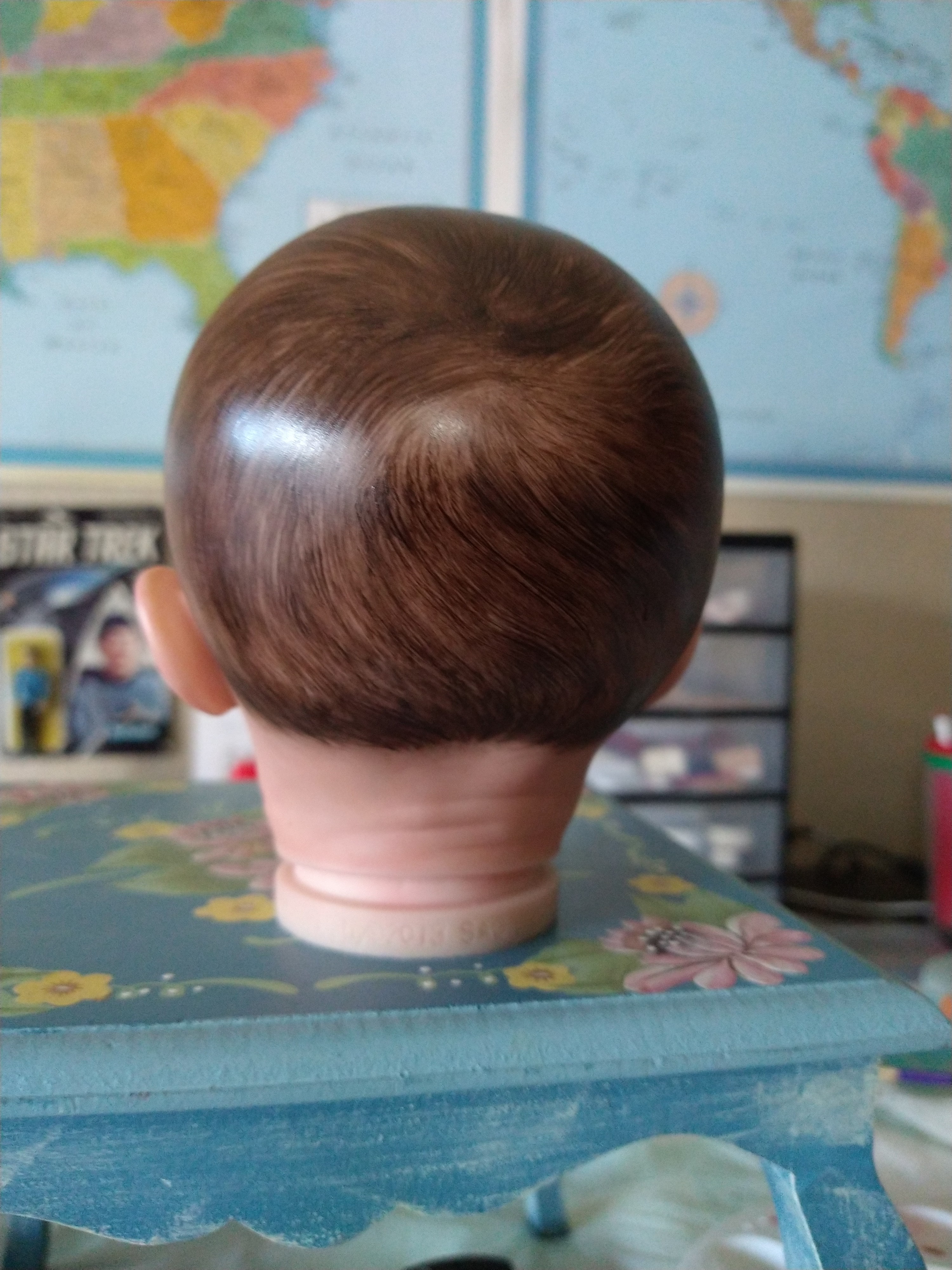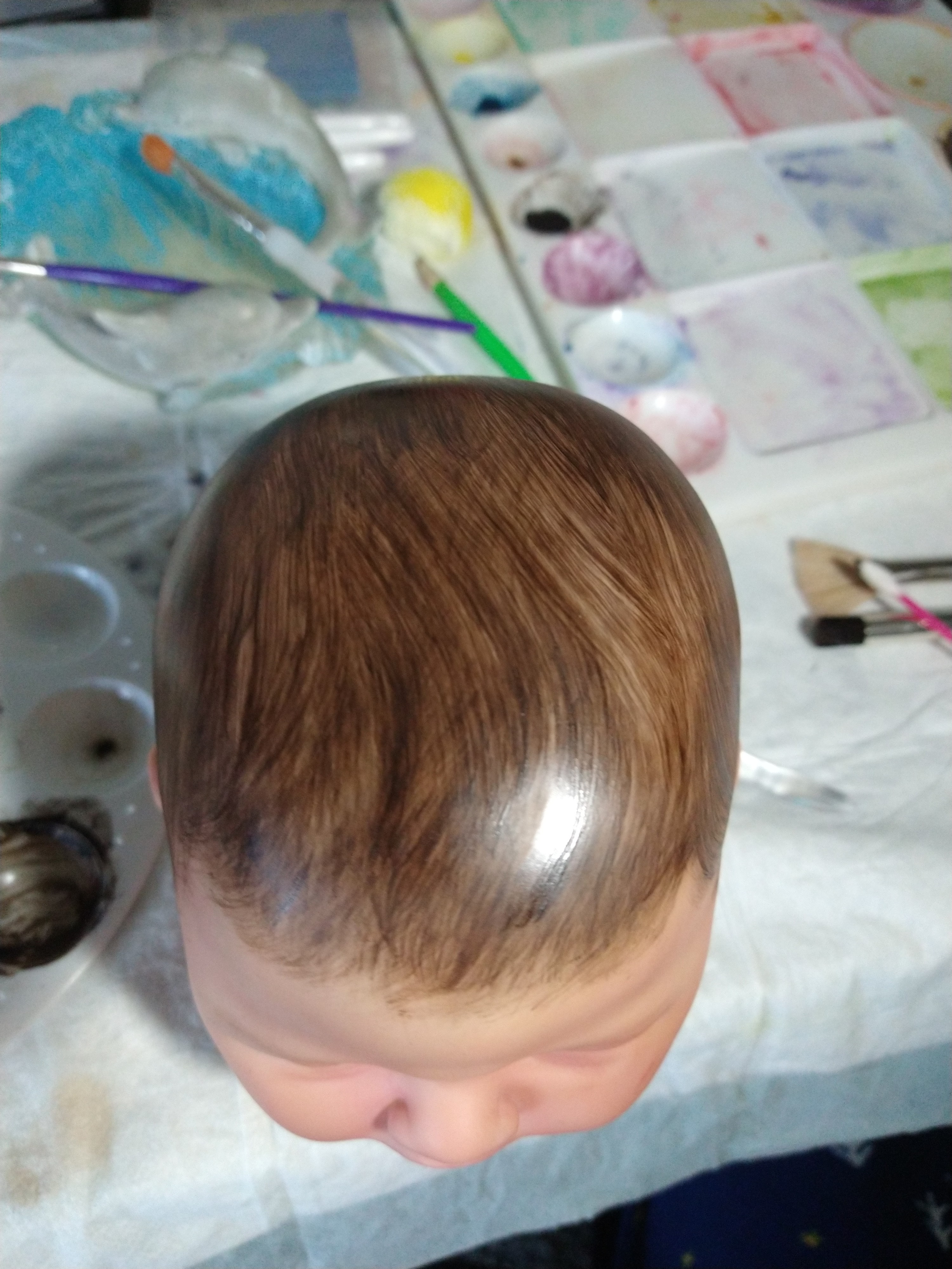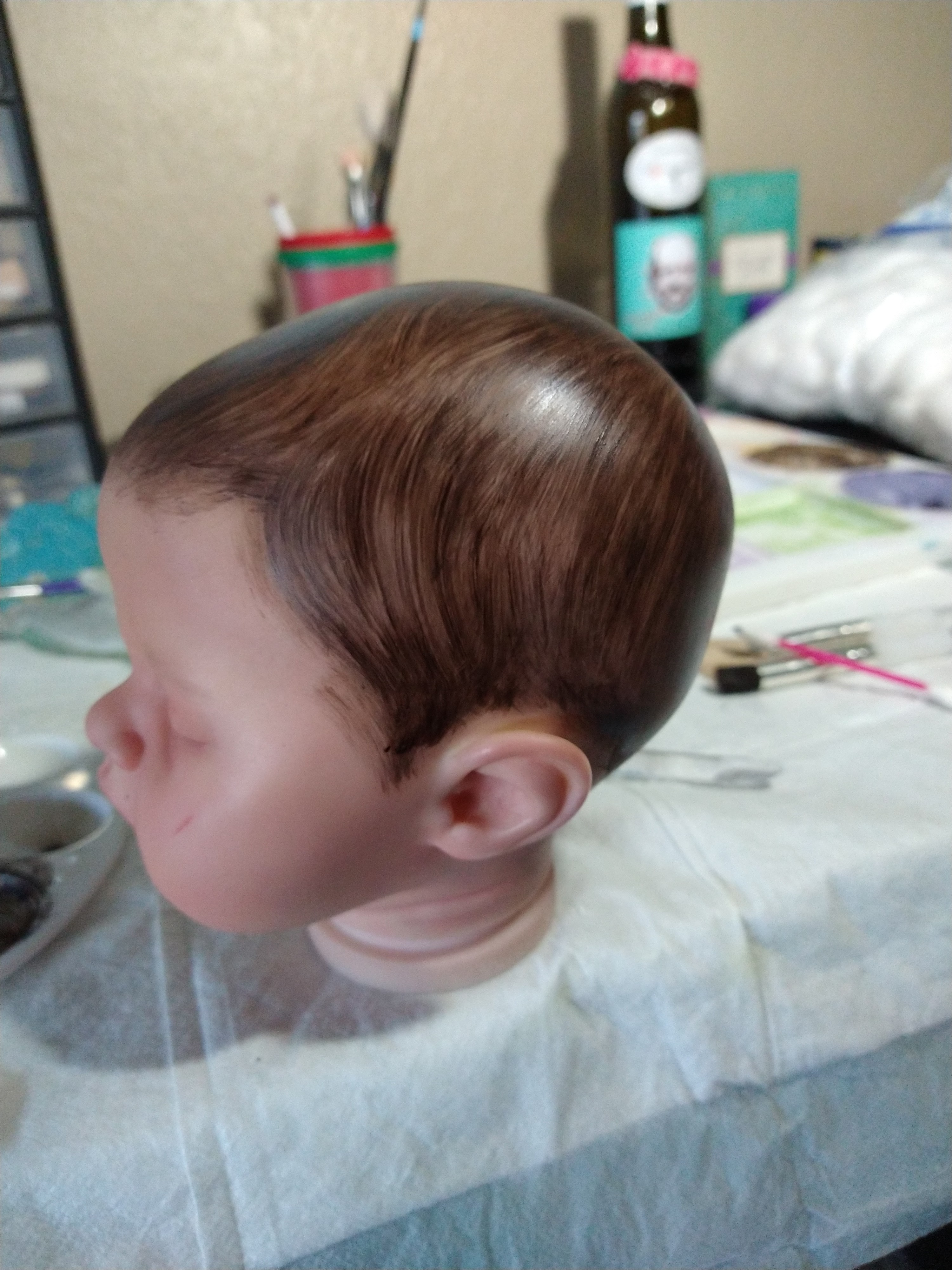 I was practicing hair this afternoon. By the time I finished and wanted to take pics it was dark, so there’s a massive shine from my ottlite.