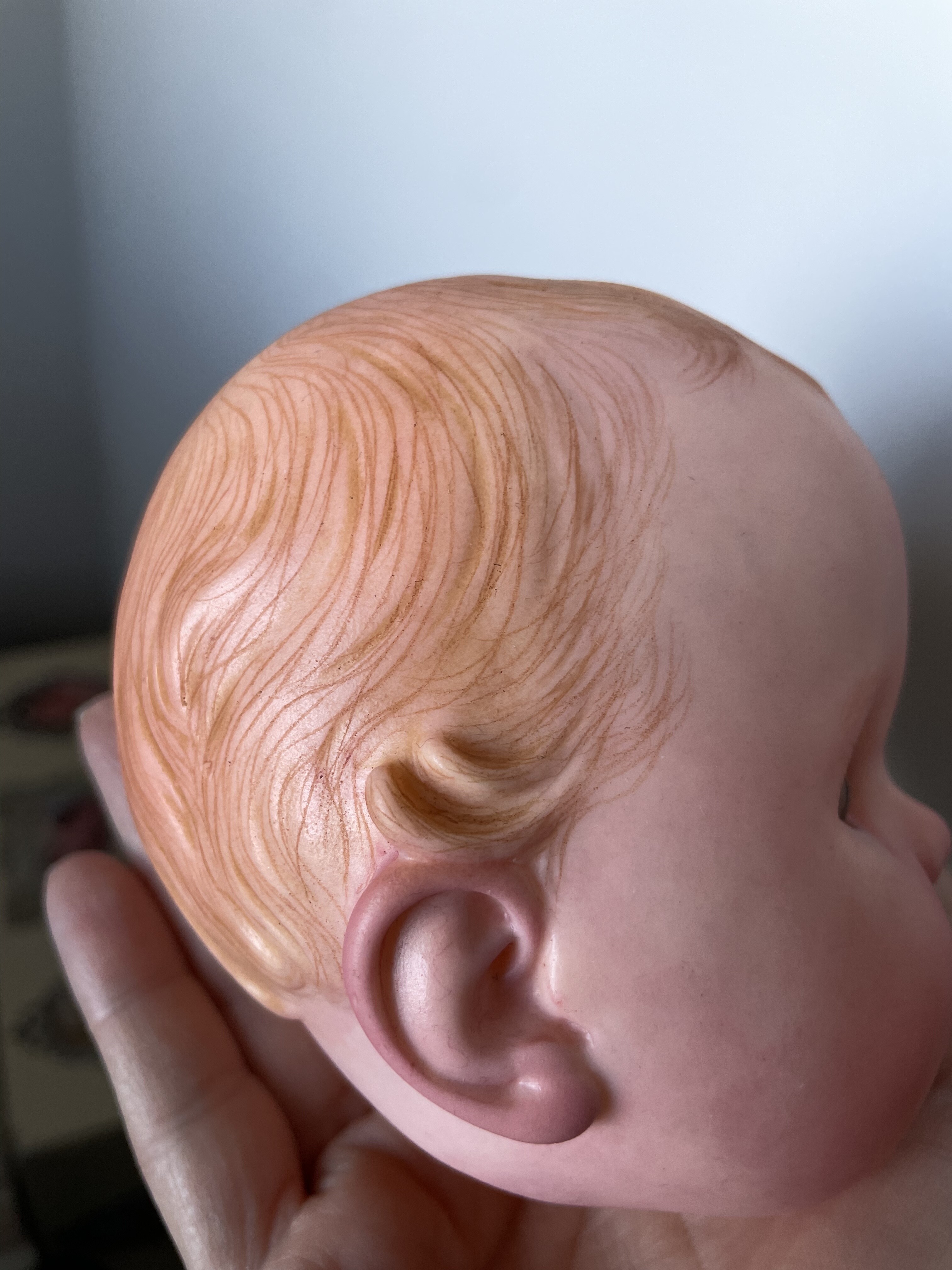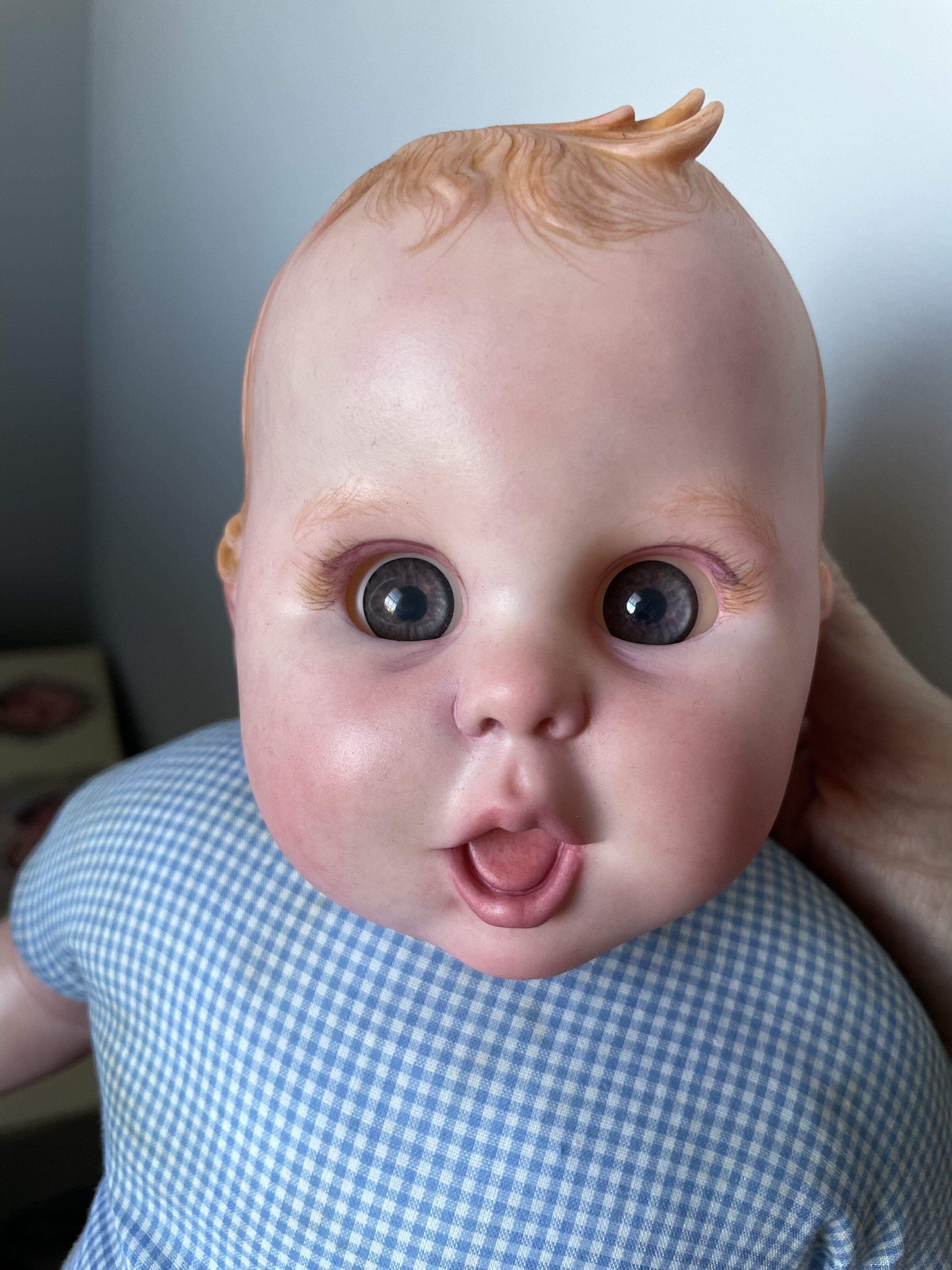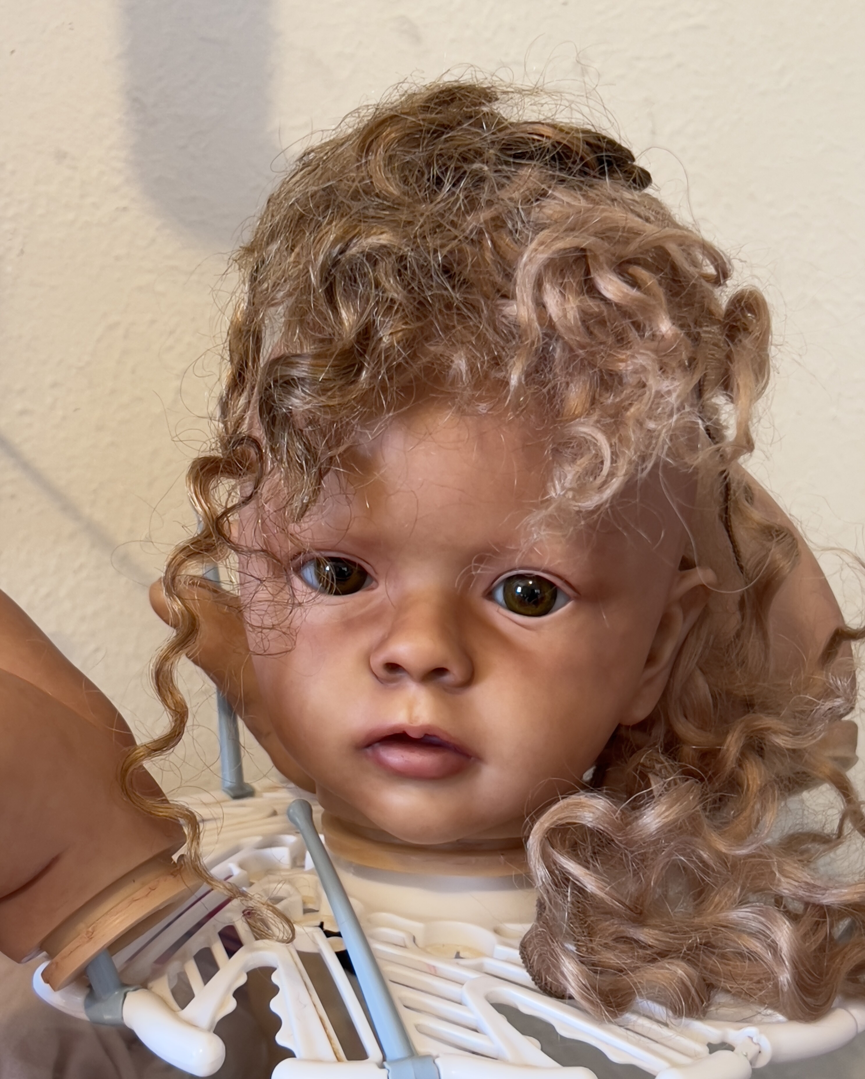 Gerber baby got powders, eyelids, brows, lashes, and some prisma hair. Not done yet but she is pretty cute! I still need to order some blue eyes!