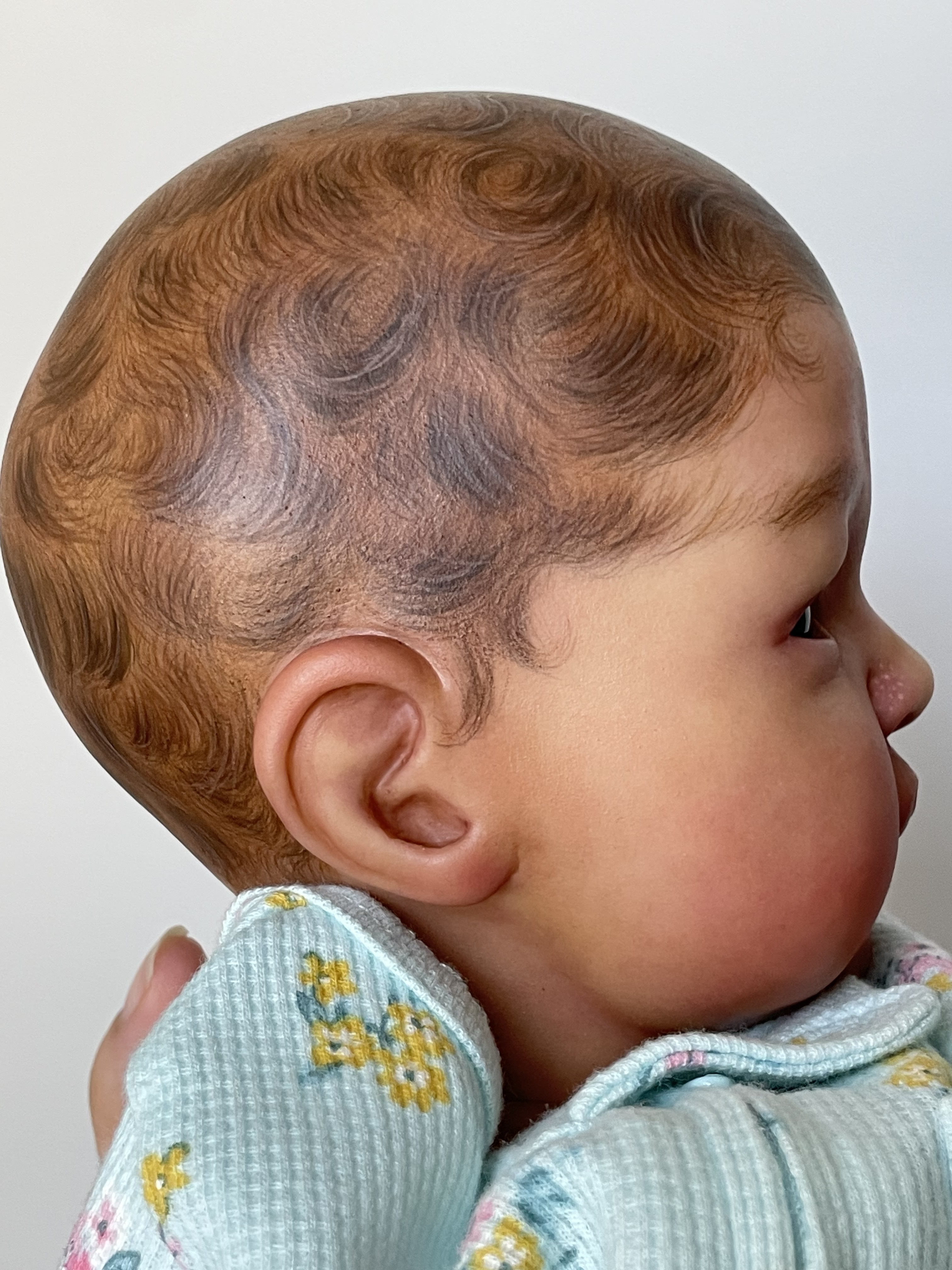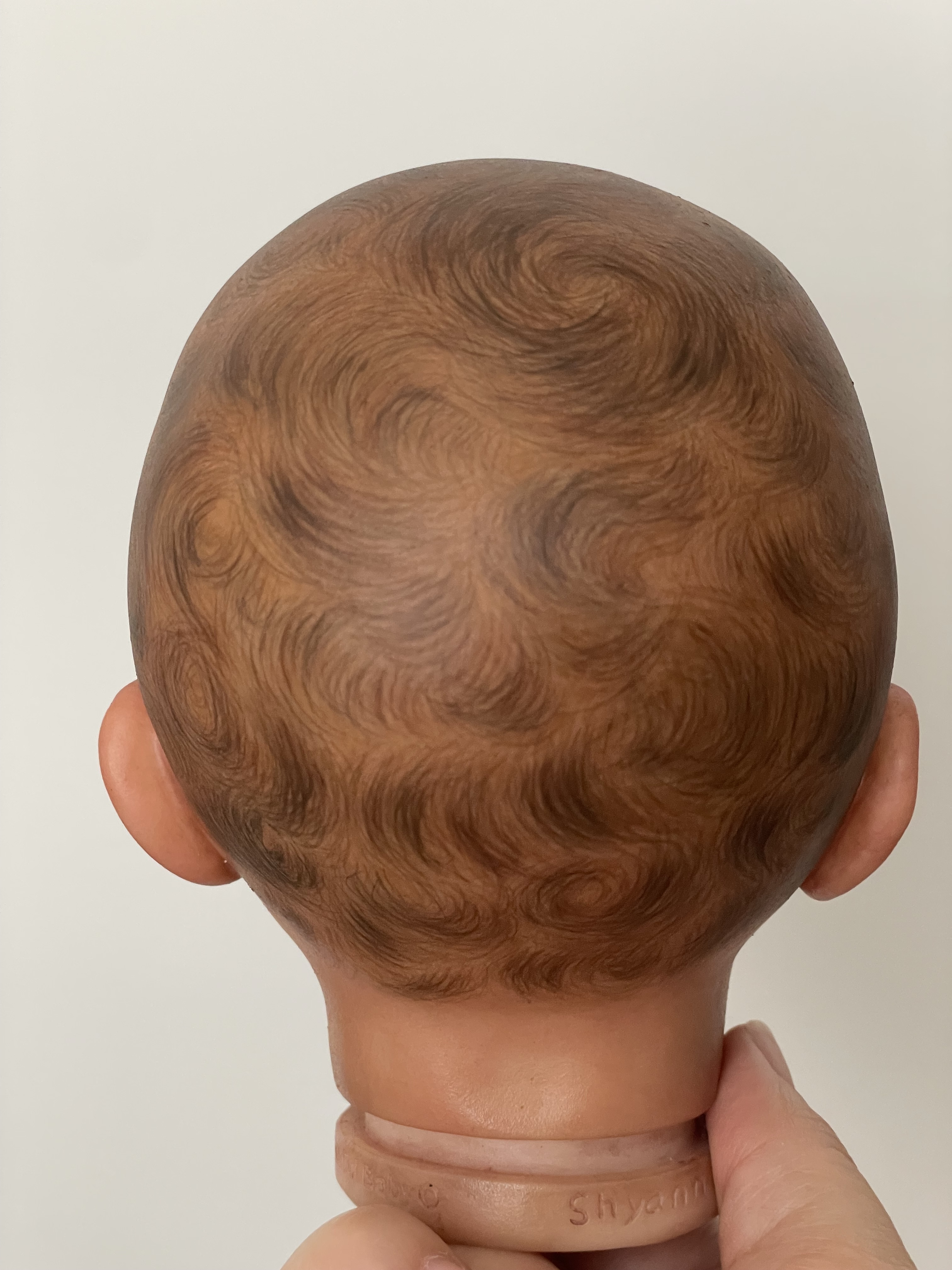 I added 3 layers of a brown wash over the hair. Now I am liking it better. Still more to go. Last two pics have a close-up of chuck hazel polyglass eyes and the a pair of blue German glass with some green around the pupil. Have a preference?