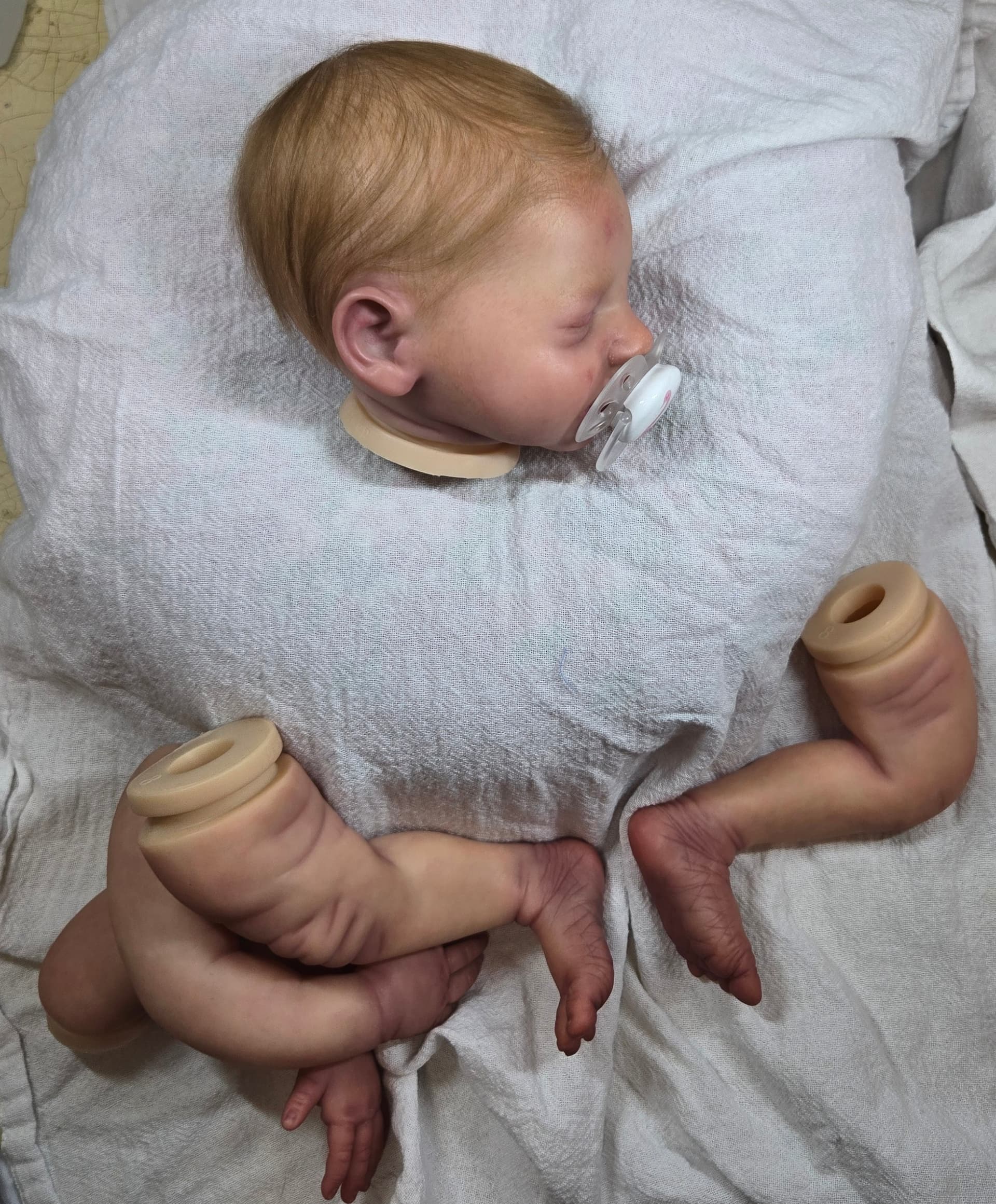 Ok, after 1.5 years lol bb Steven is nearing assembly. Just waiting for hair and magnet glue to dry! He will be my first seller and first attempt as rooting which I have much to learn! I took several lighting photos…the more purplish shading is with a natural daylight bulb and im hoping it’s not too much but here we are! I’ll likely ask for advice on pricing at some point but this journey with this babe has been long and a ton of trial and error.