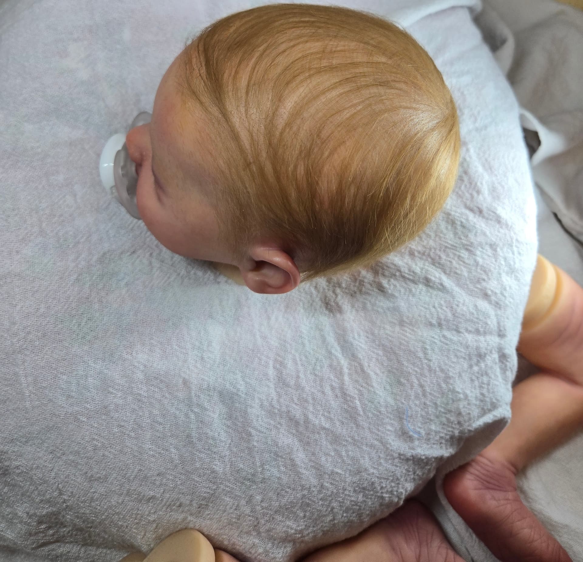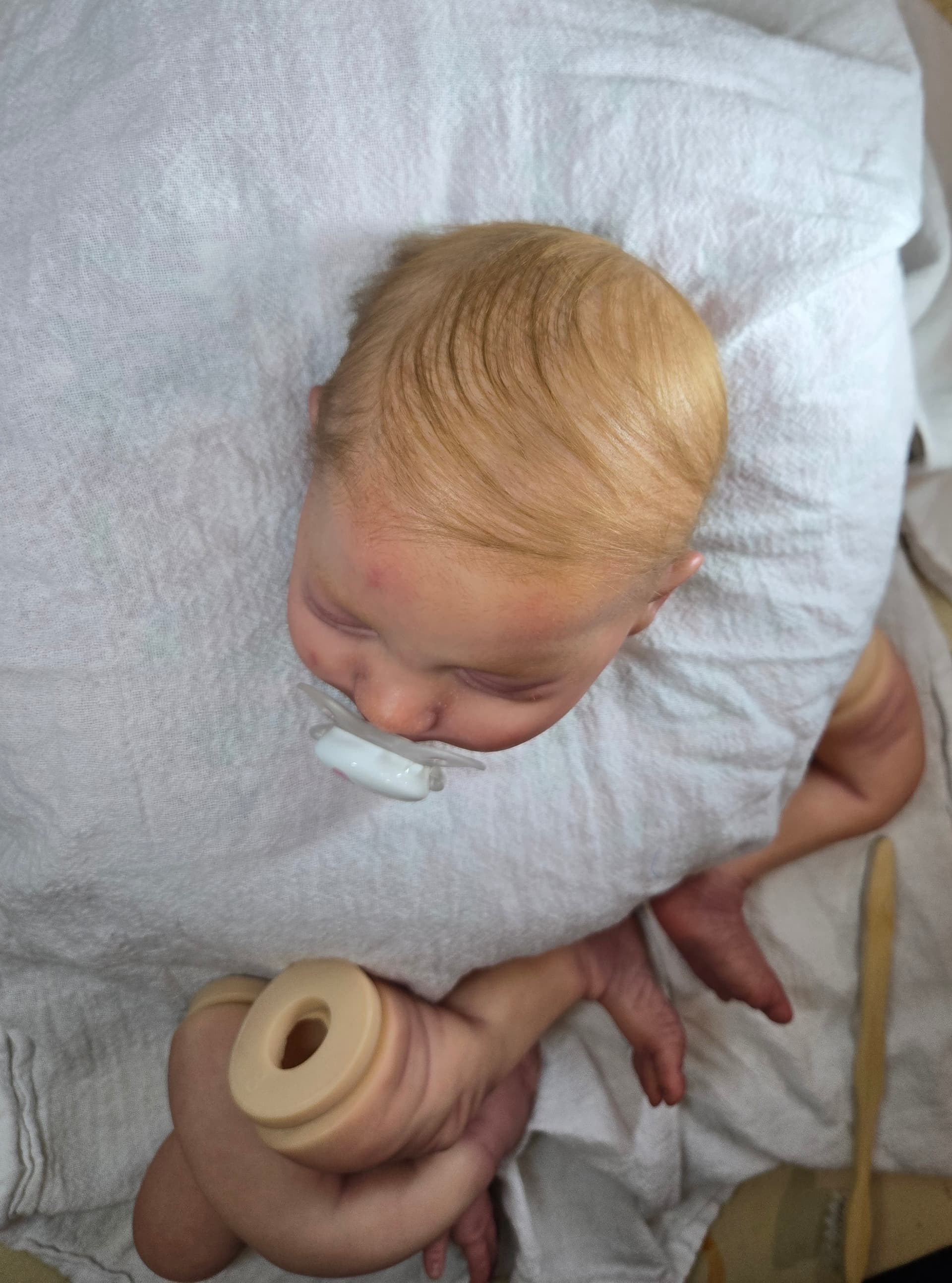 She contacted me last night and said she wanted to go ahead and pay for him and the only thing she asked for was blond hair and blue eyes like my last one.