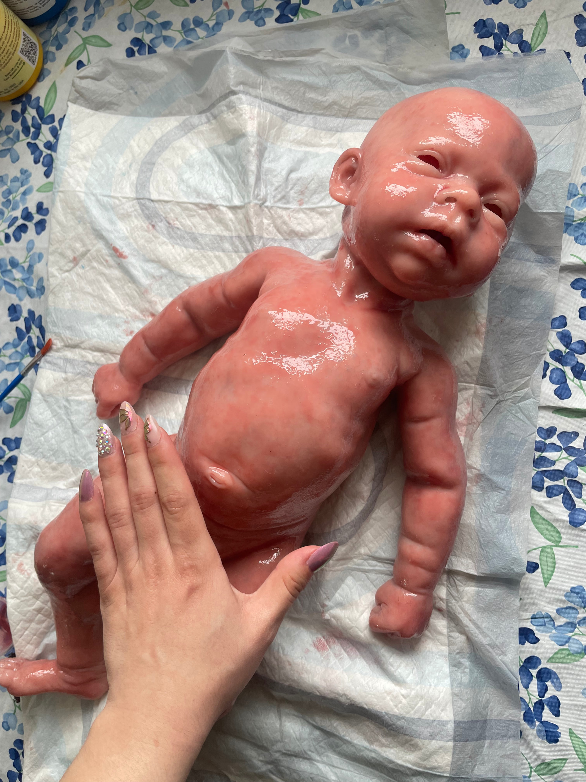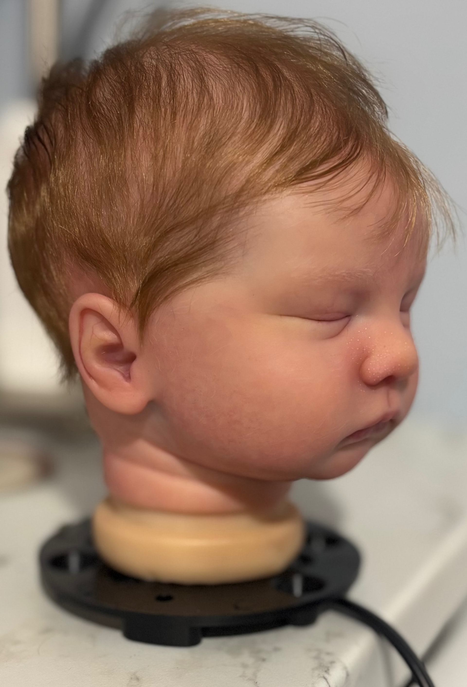 Finished painting the head on Yuna. If any of you have this kit let me tell you what I have noticed. there tends to be an underlying tint of orange in the vinyl. I have certain colors that I use as a go to and they did not work on this vinyl. I found if you first put a good coat of varnish over the eyebrow area and in between the eyebrows and on the lips, then you will have better control of the colors you want to use. Those areas appear to be the main problem. I had to remove the paint on the lips and then add the varnish and baked it and now I have a better color.