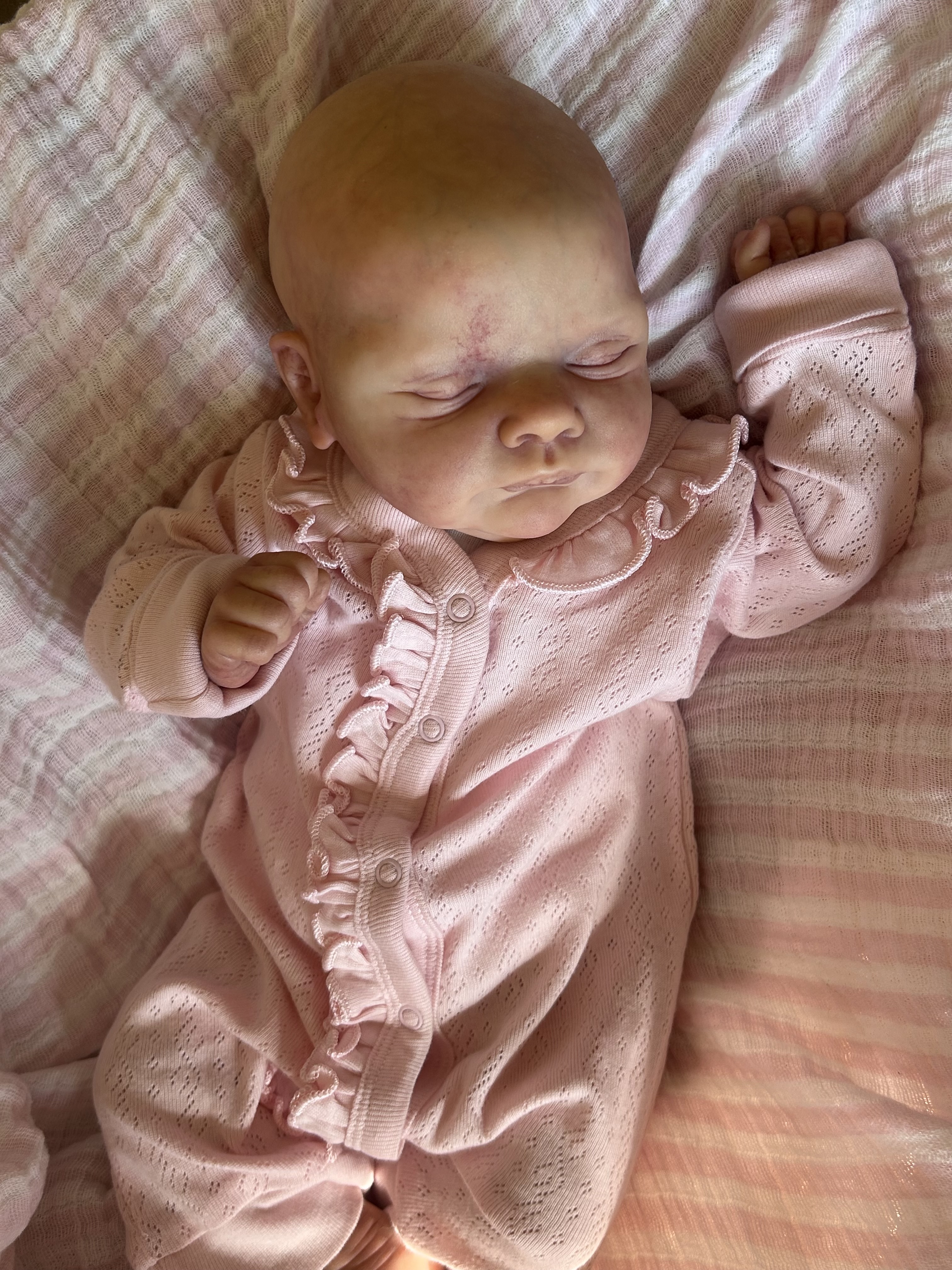 Had a snow day today so got to paint a little. did some more creasing and shading. They are more red than showing up. I am thinking of doing another yellow and red mottle, then some more blue shading and another all over blush layer. Then I might be ready to move to powders.