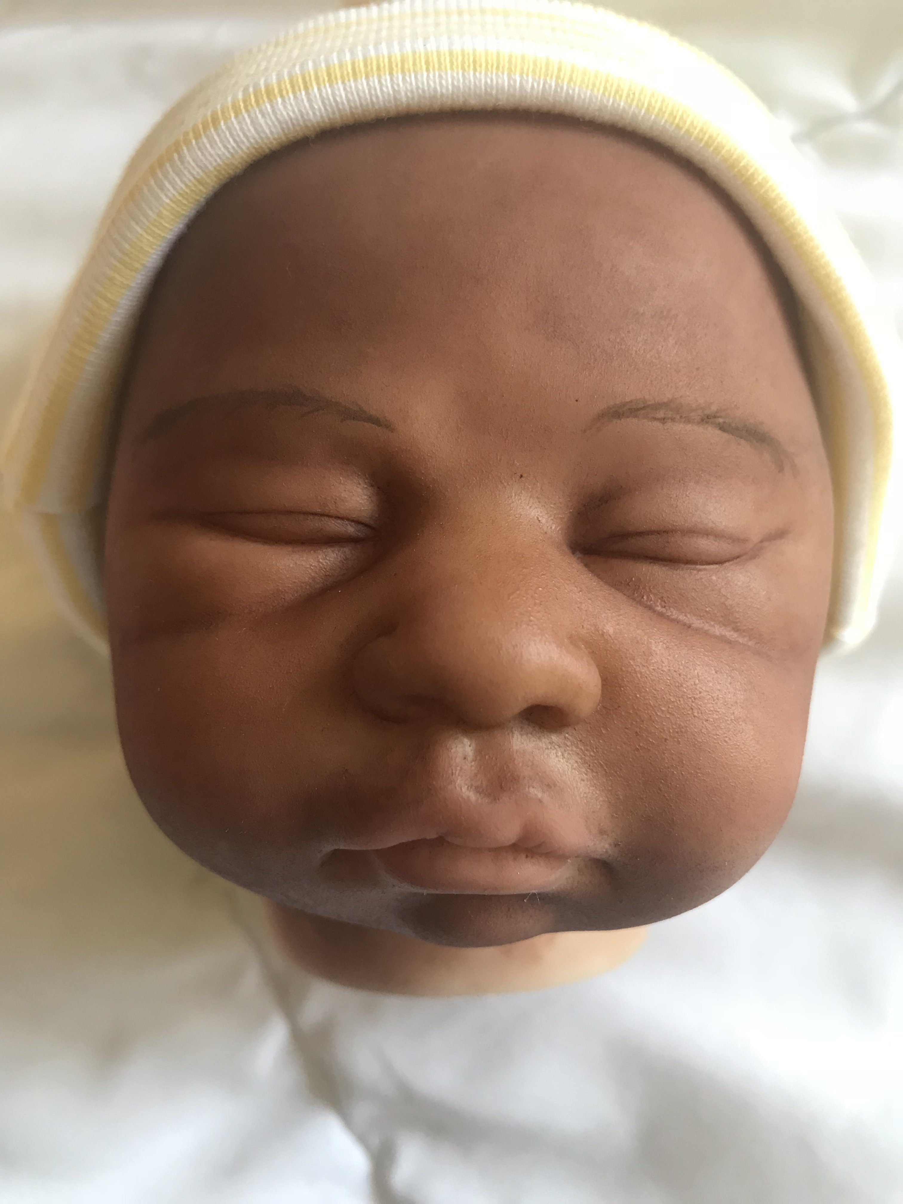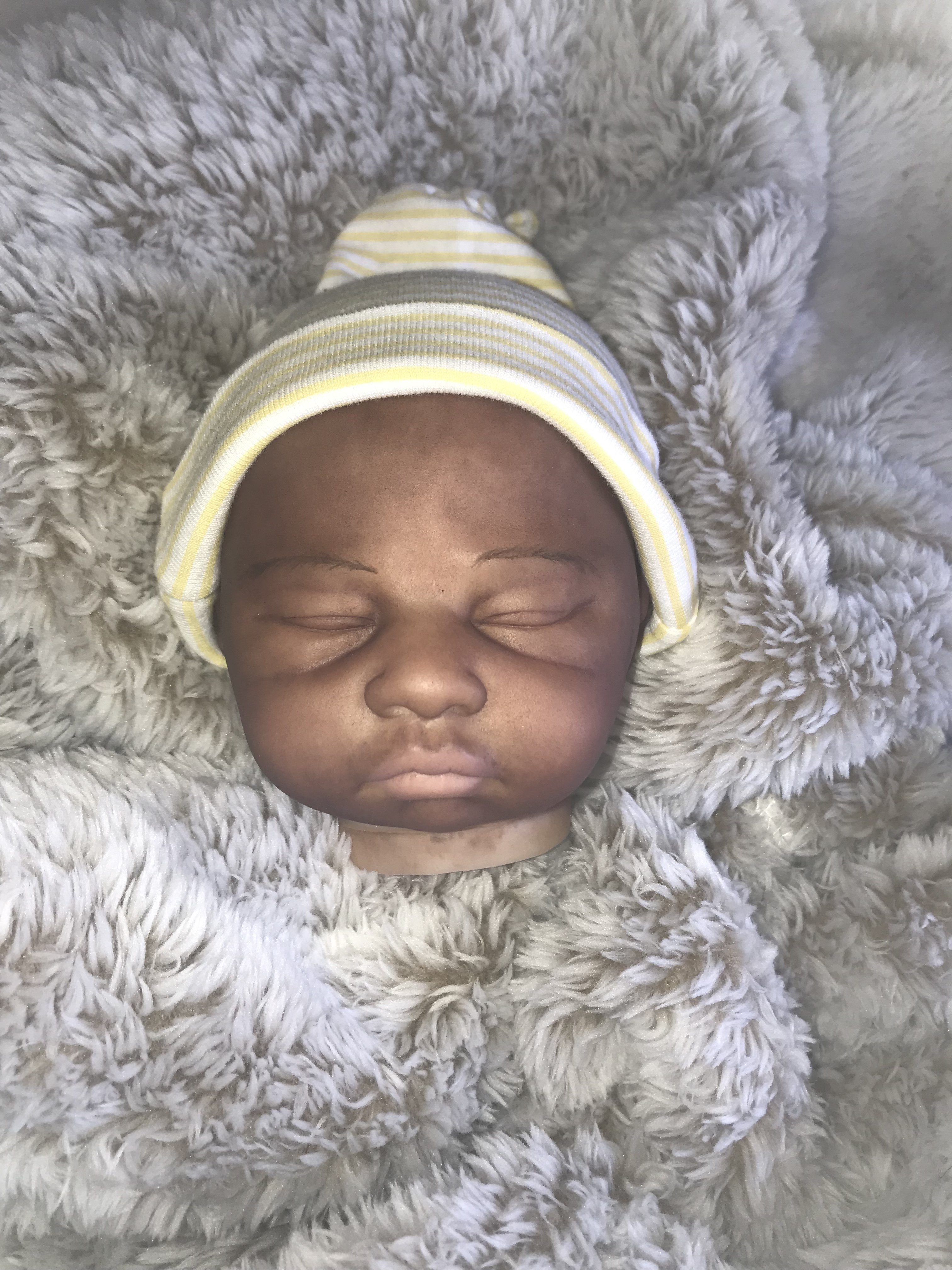 She is beautiful even with the scratch. I seem to be getting a lot of BB babies with little holes in the vinyl that show up only after you start painting. There is a slit in one of my Zuri’s leg that Ill have to turn into a scratch. I also love her hair…is that painted?