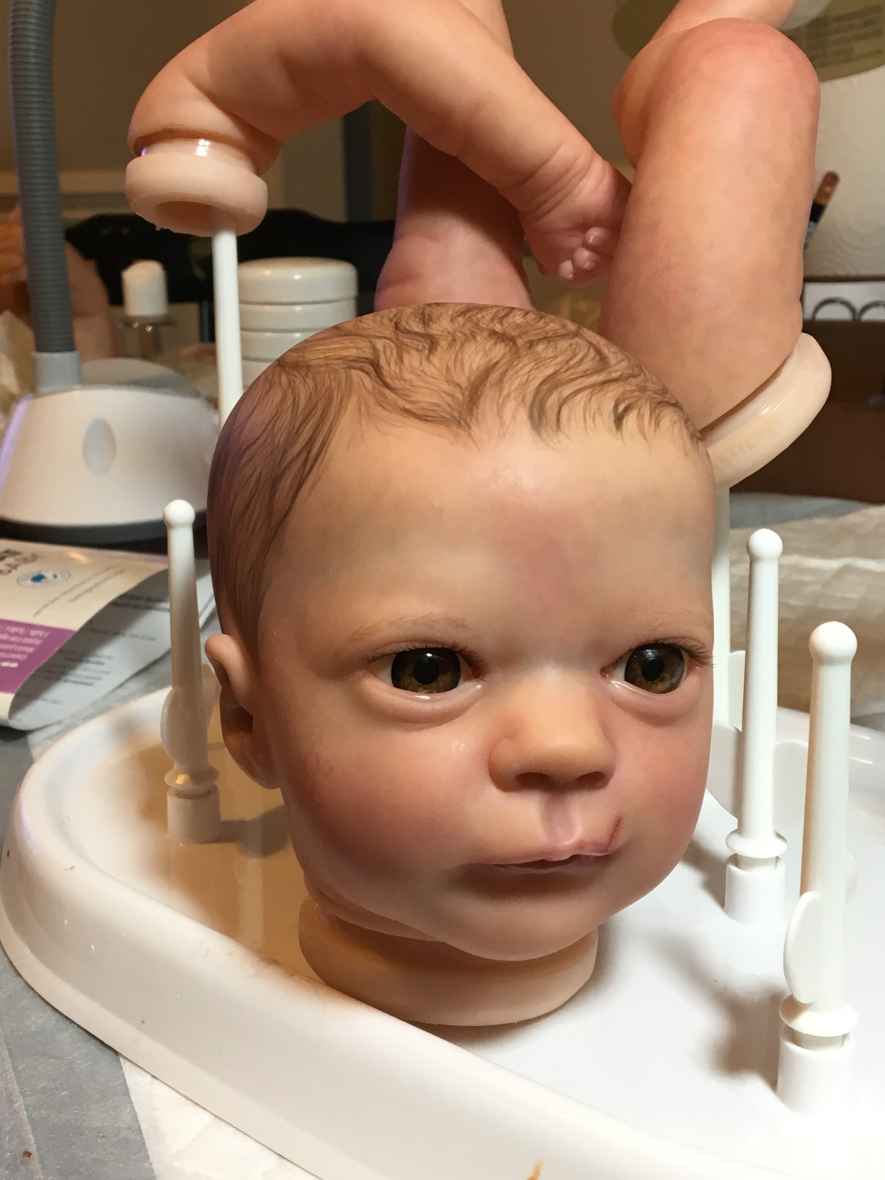 Just waiting on the glue to dry for my Ashley Awake. She didn’t turn out the way I wanted. She gave me fits the whole time lol! And she had a hole in her lip that didn’t show up until several layers in, and it started catching paint. Had to turn it into a scratch.