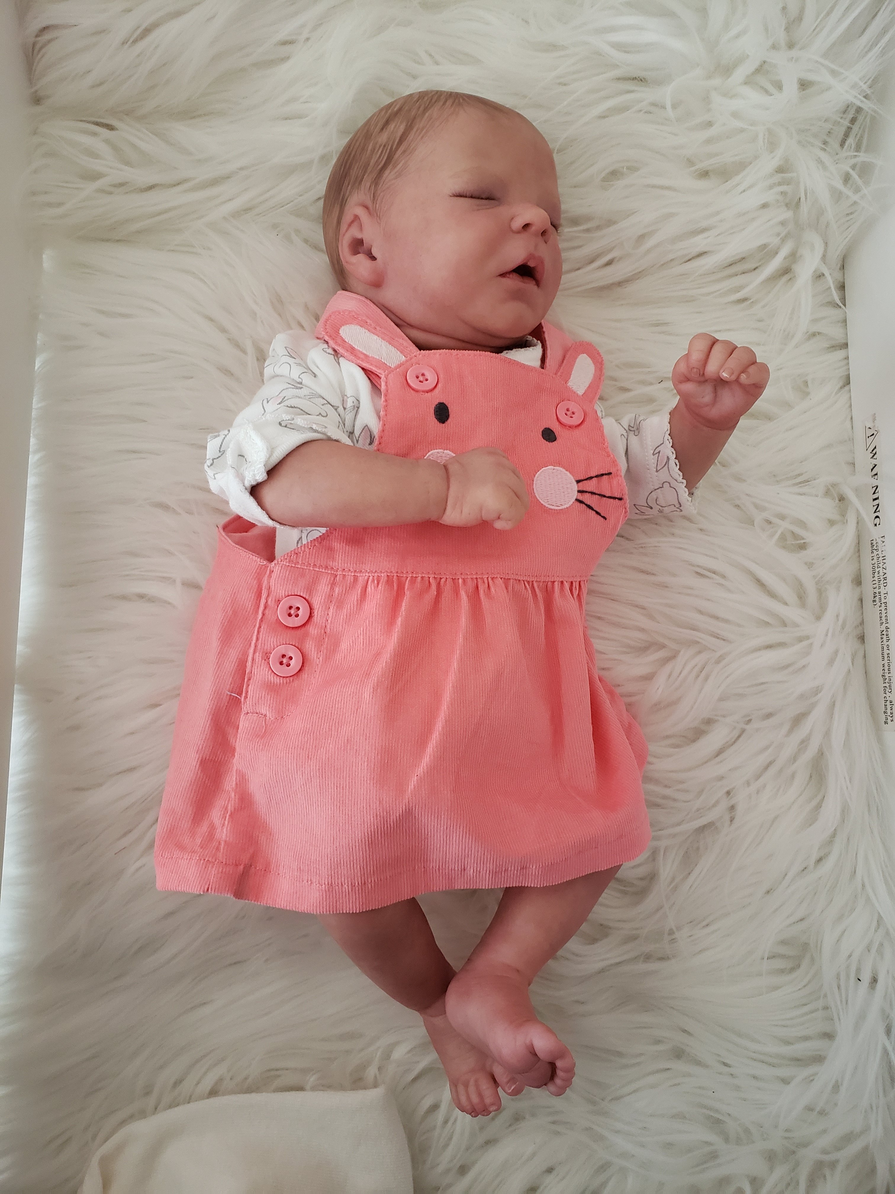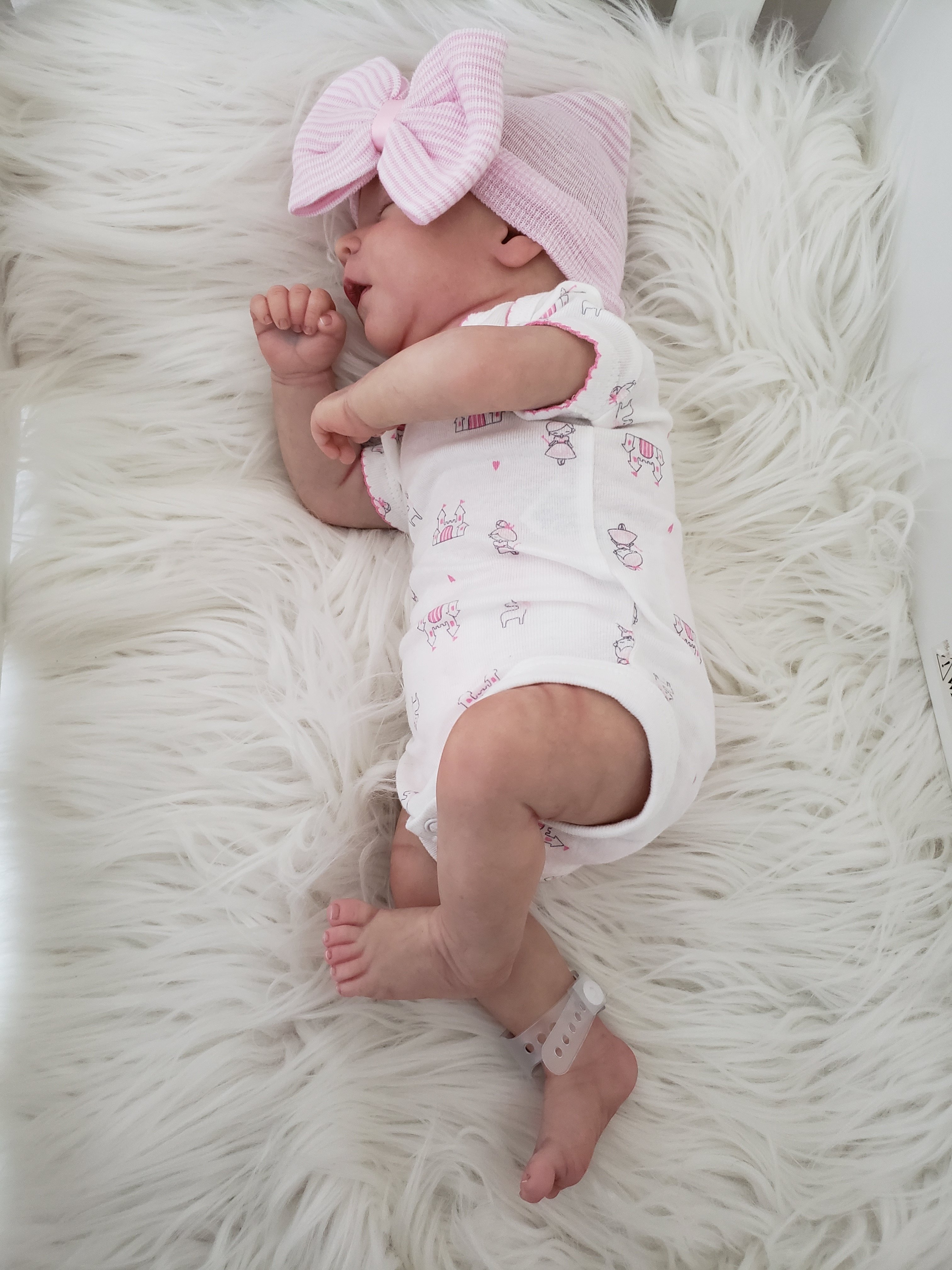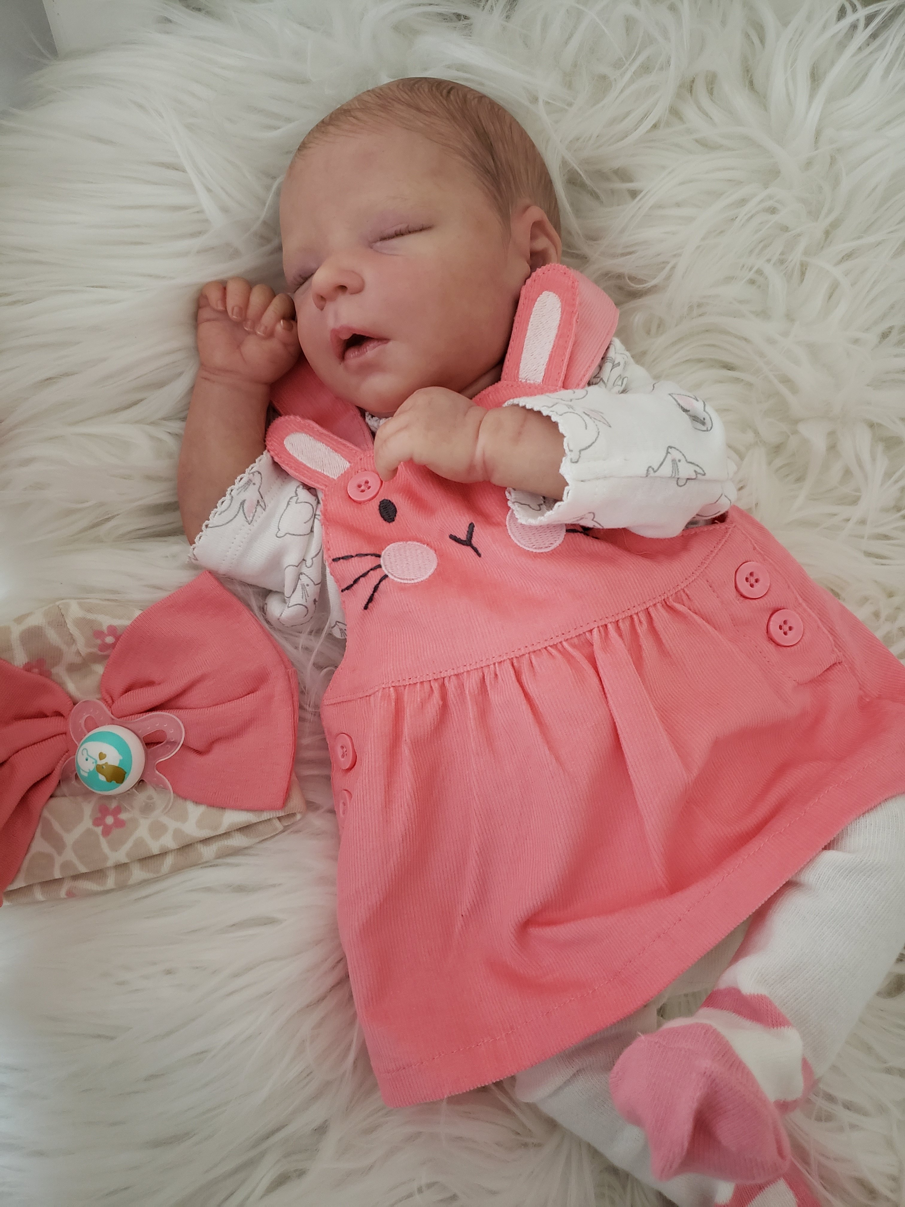 @jlesser she actually can fit bigger preemie and small newborn. That bunny dress is carters newborn and is baggy, but I didn’t mind. My babies were little so this is what they looked like in their clothes at first.