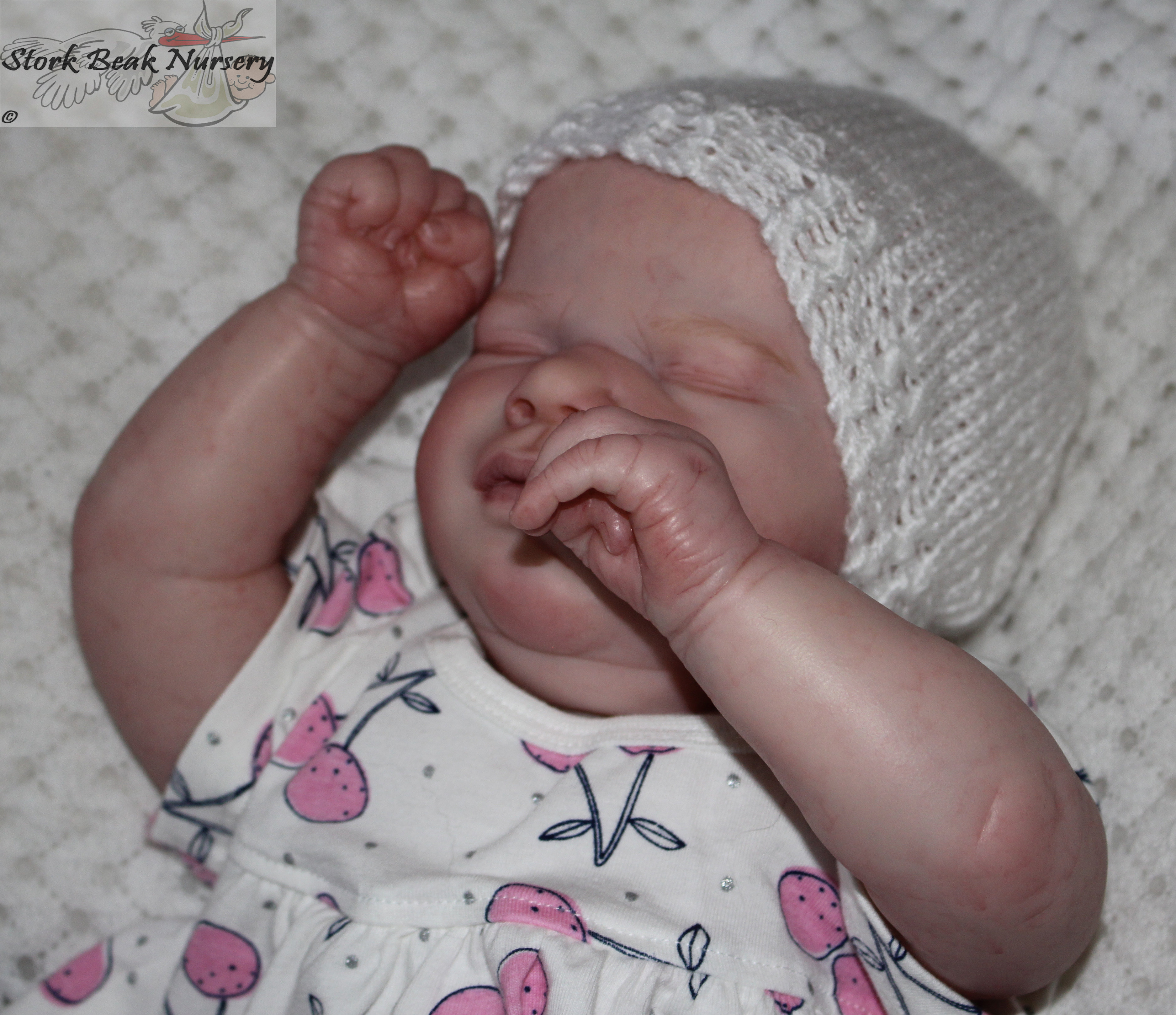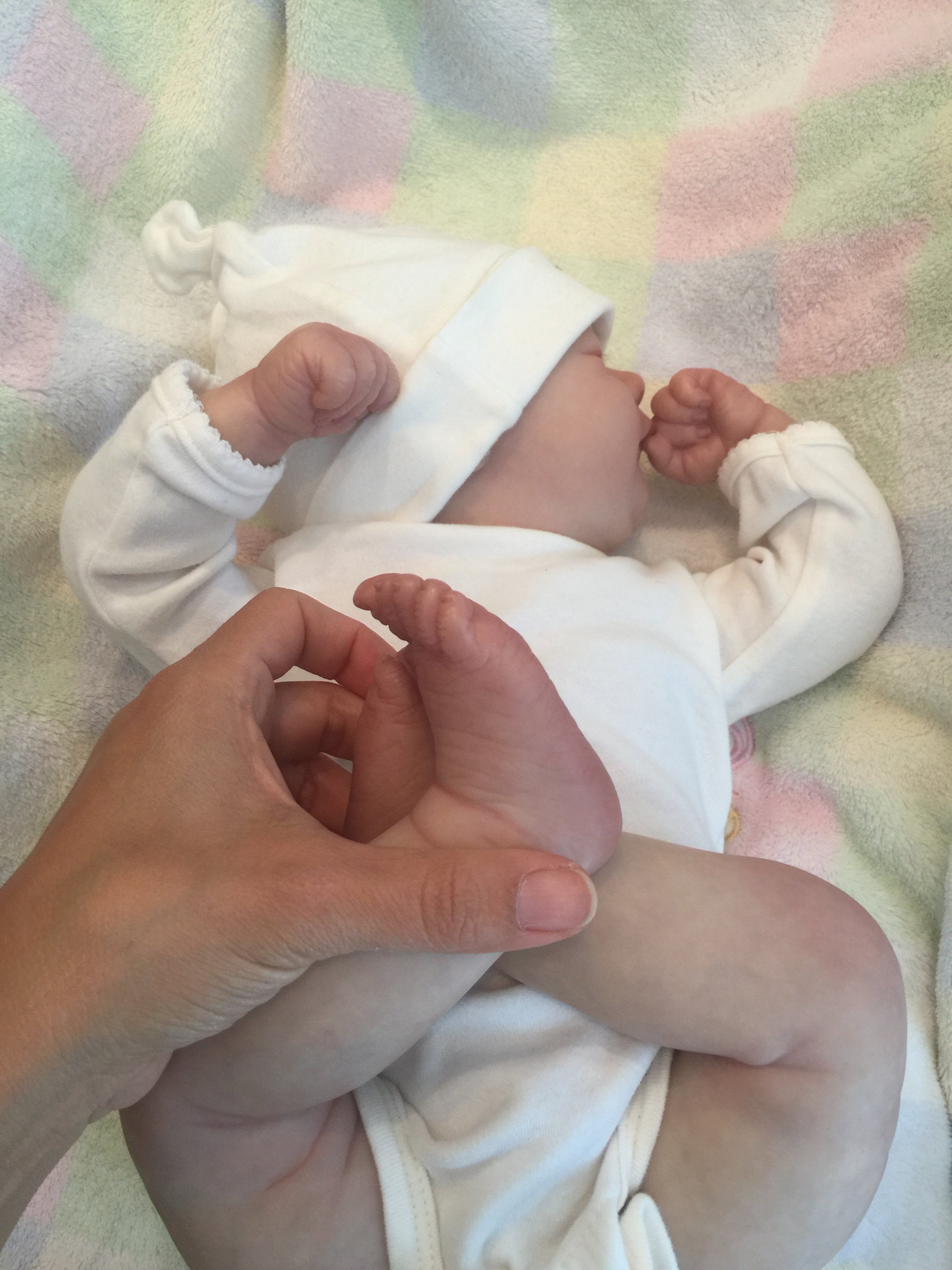 Yes, swam would be a better term. My last baby was 5 lbs and some change when we left the hospital. So tiny that the smallest of newborn sizes were huge on her. I saved some of these tiny outfits. Jenny asleep reminds me so much of her that I’m going to paint myself a keeper and put her in one of these tiny outfits.