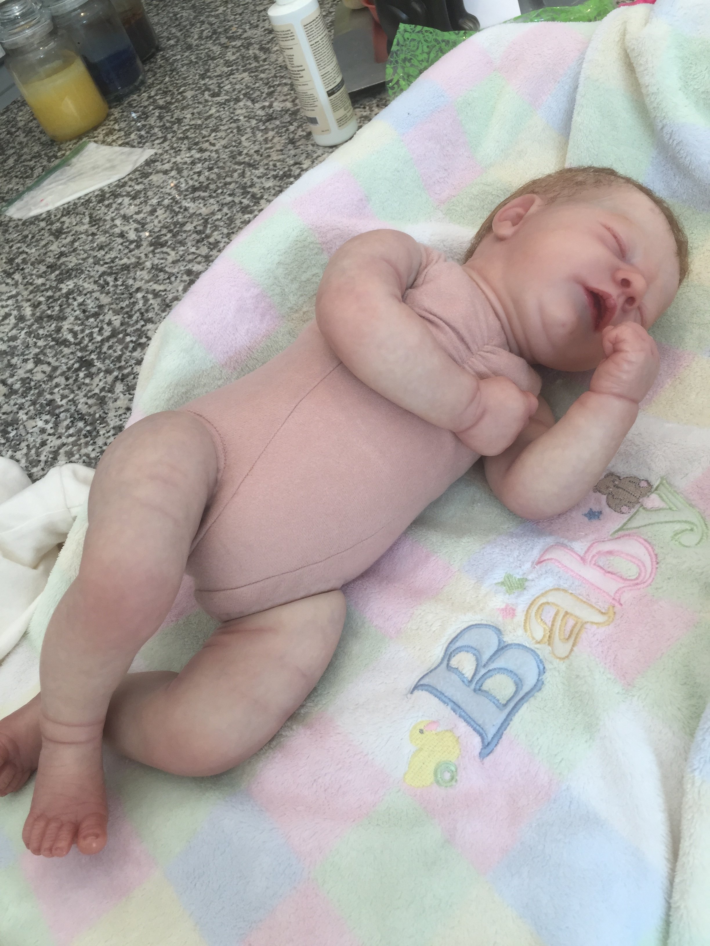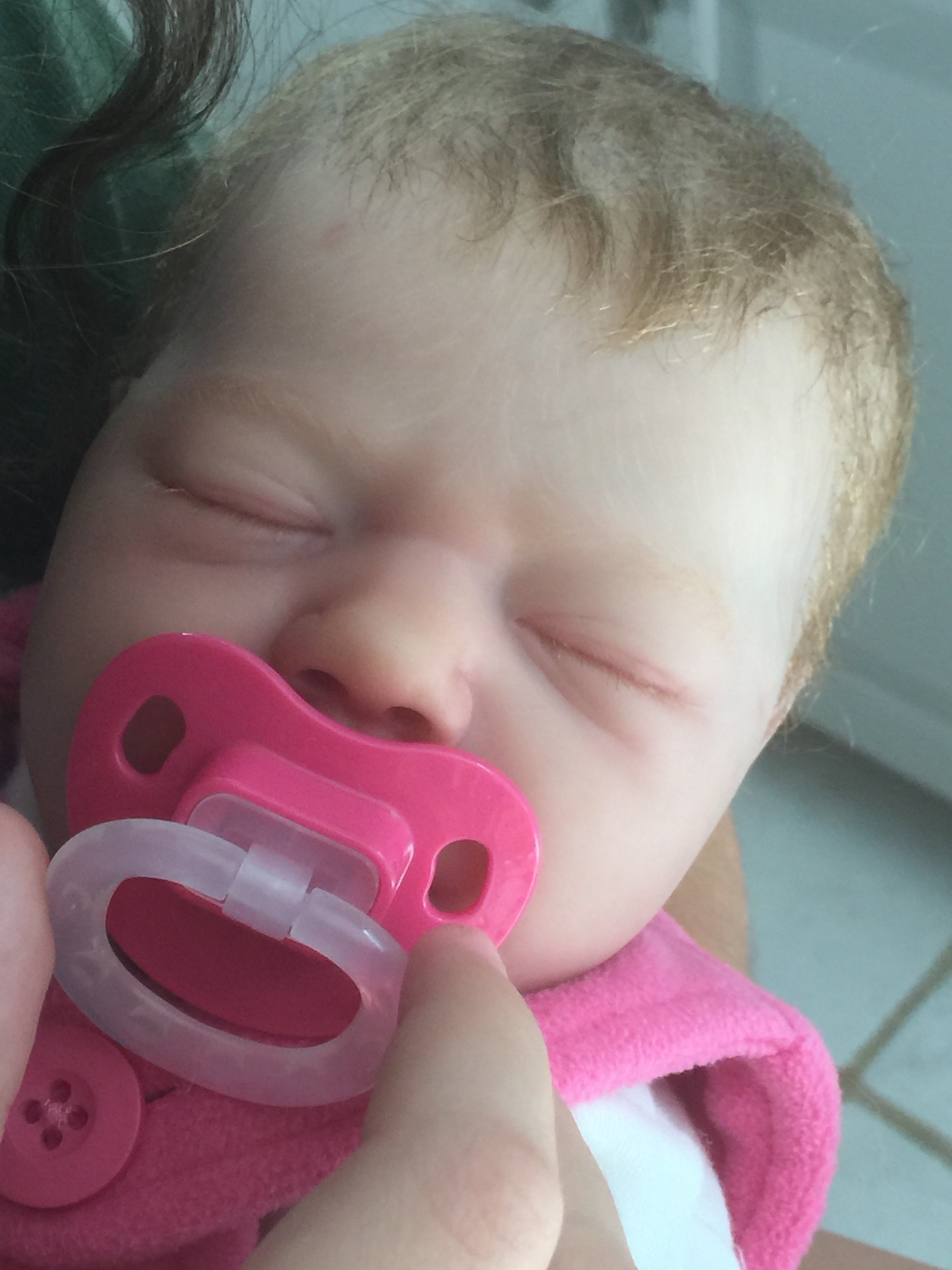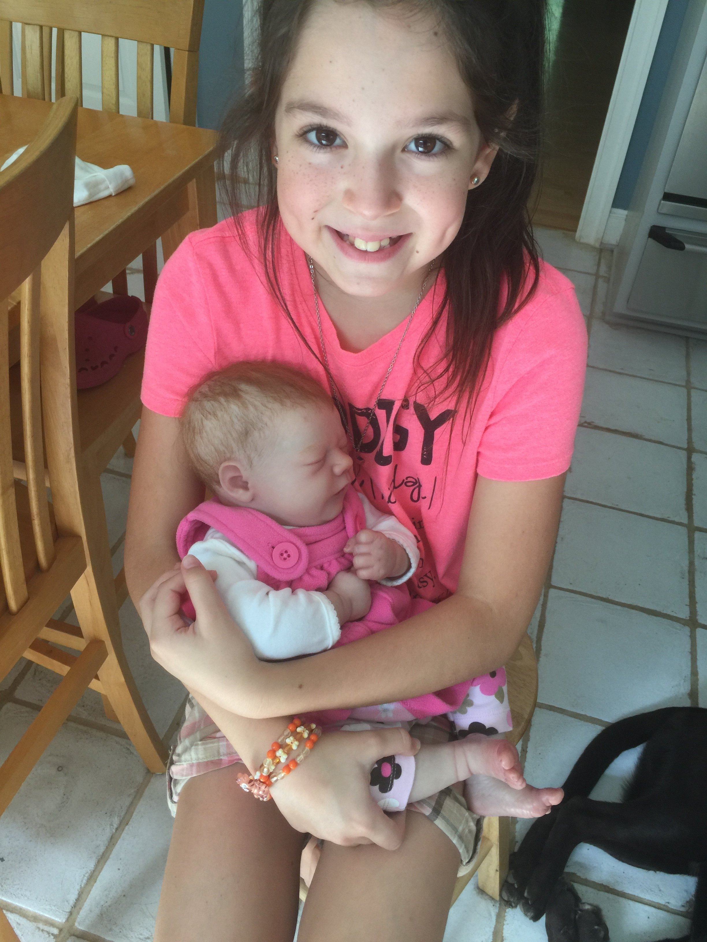 My first reborn ever is finished! Here is Brooklyn from BB. I’m sooo excited, I think she looks pretty awesome for my first time! I rooted my daughters hair when she was 2 years old! My daughters are in love! They’ve been taking turns all day to hold her!!