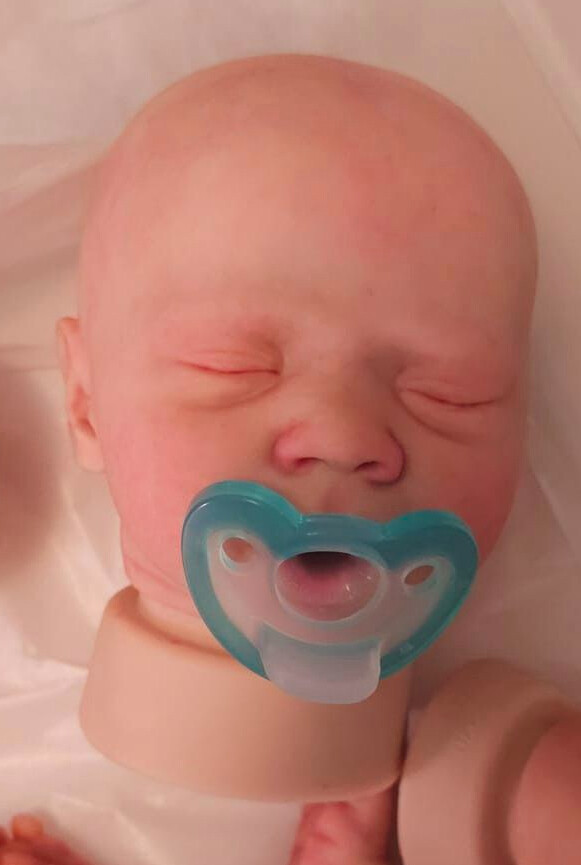 Matting is rinsed off. Will check it in a couple days to see if any sheen emerges to be fixed. Night time here so hard to get good pics. This is not my best coloring in silicone to date but it has been an experiment overall. Mouth repair went well and he/she can take a Preemie Jolly Pop Paci very well.