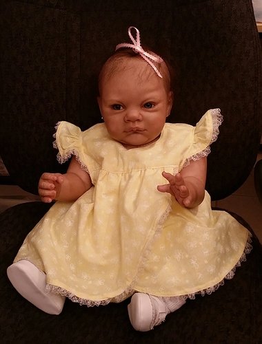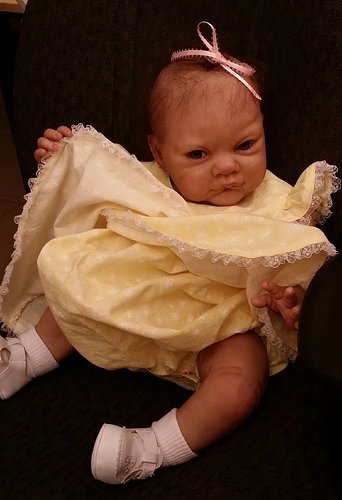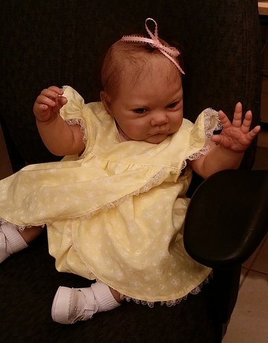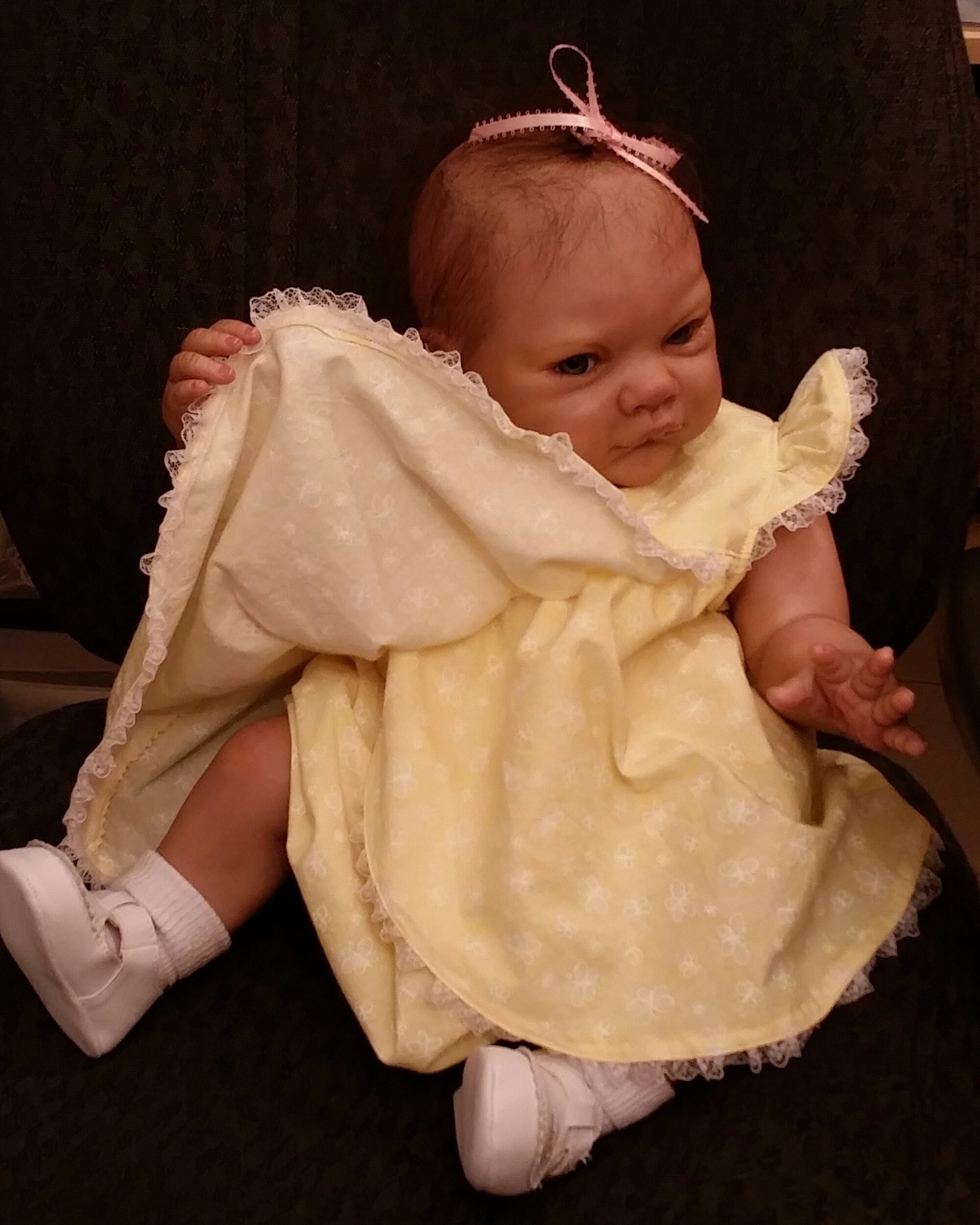 The staff at JoAnn’s loved her! One older lady was a bit confused…she said “Oh, you brought her in before.” I told her that was a newborn doll before and this doll is much bigger. She replied, “Yes, they grow fast.”