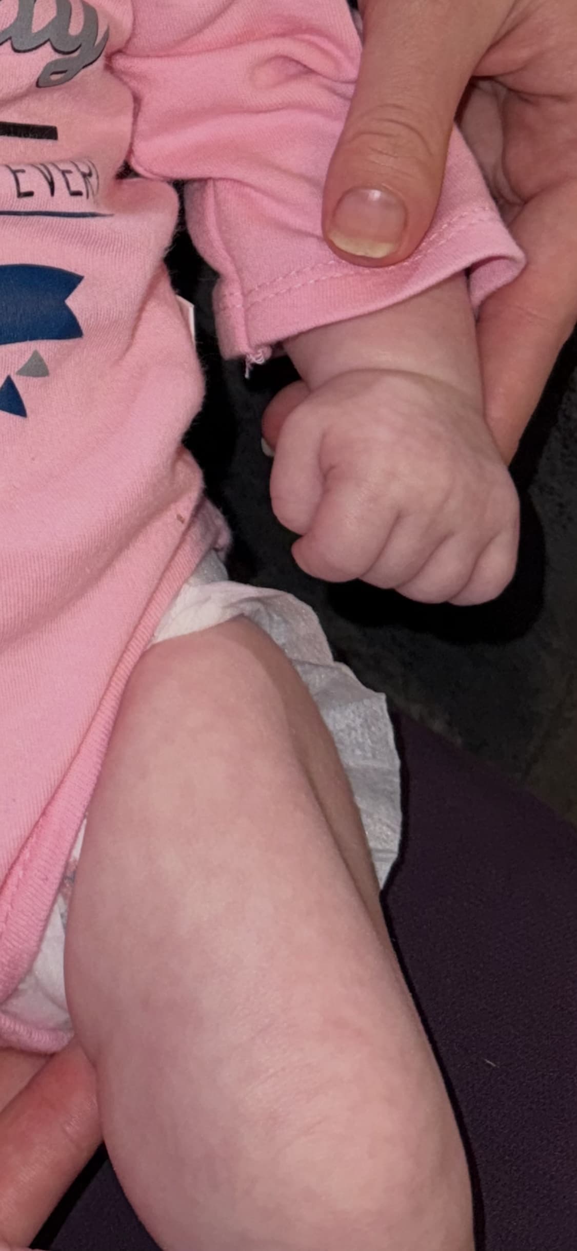 Look at this beautiful mottling on ArdenMae’s little leg and hand