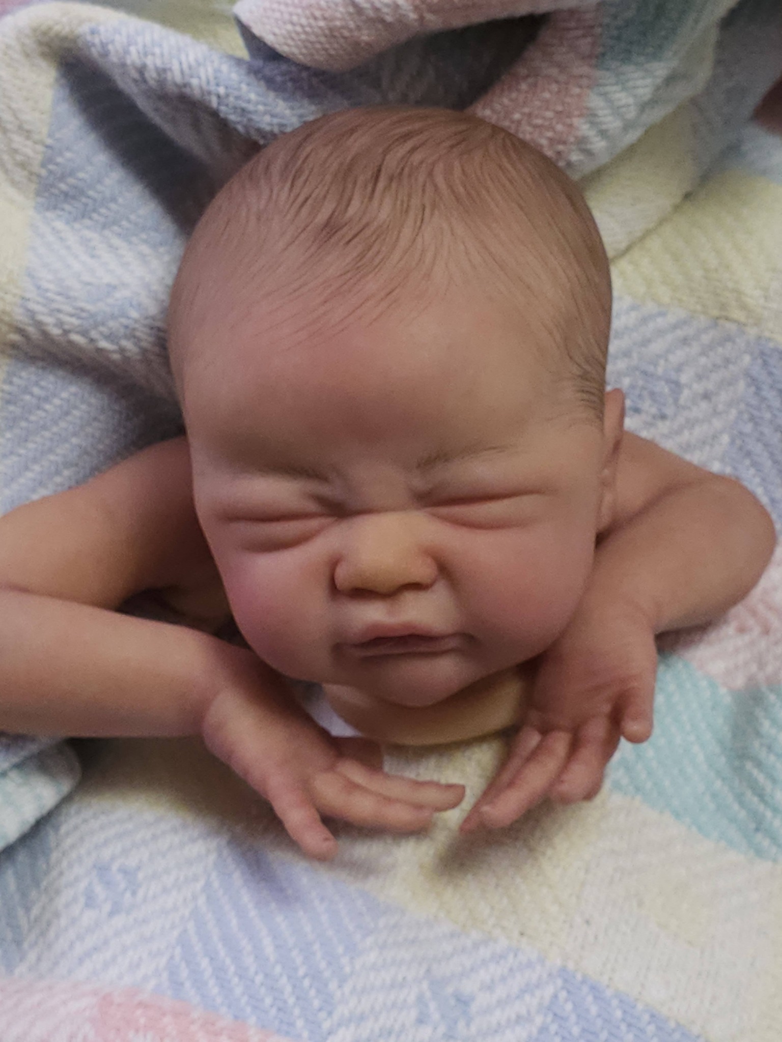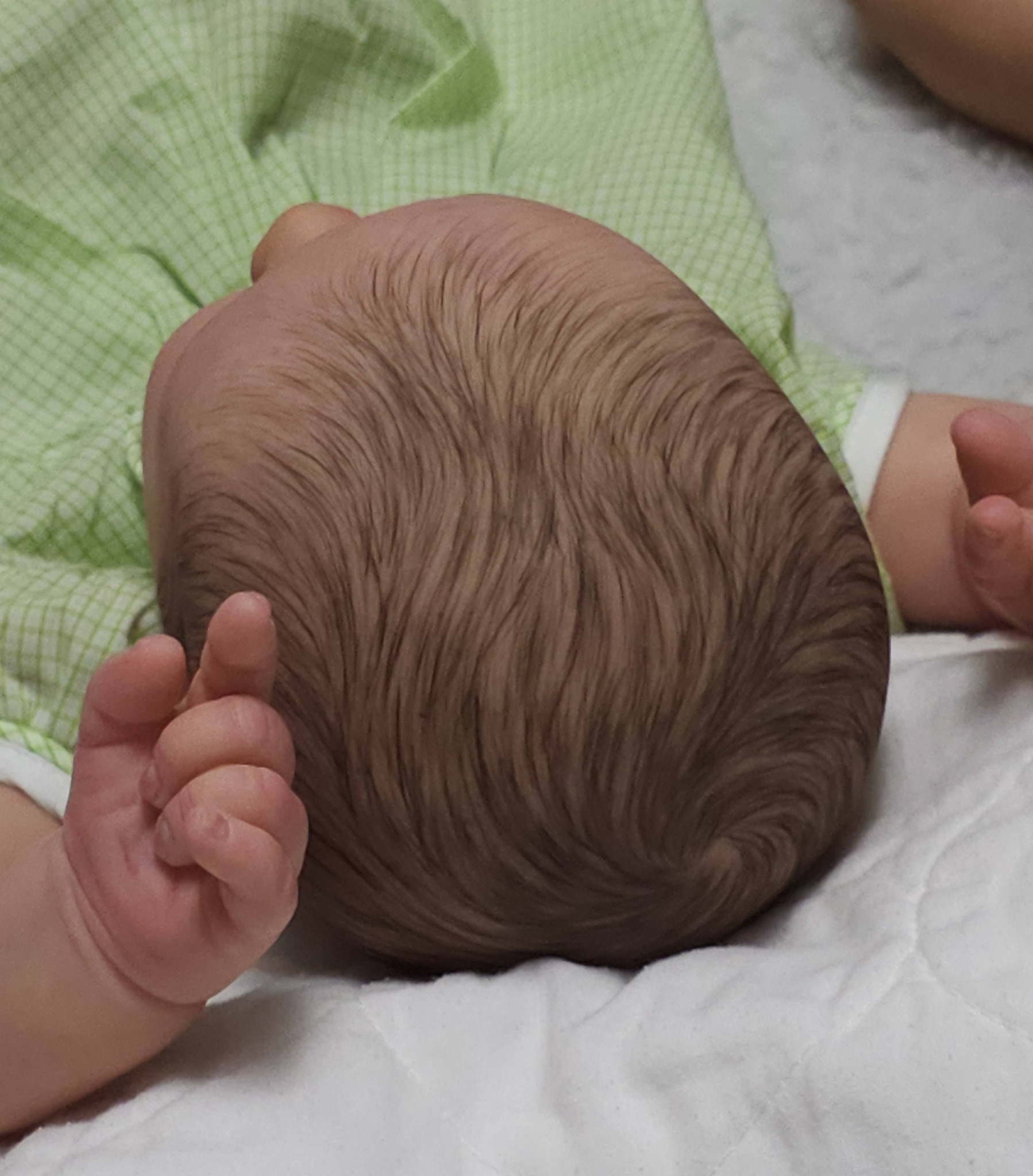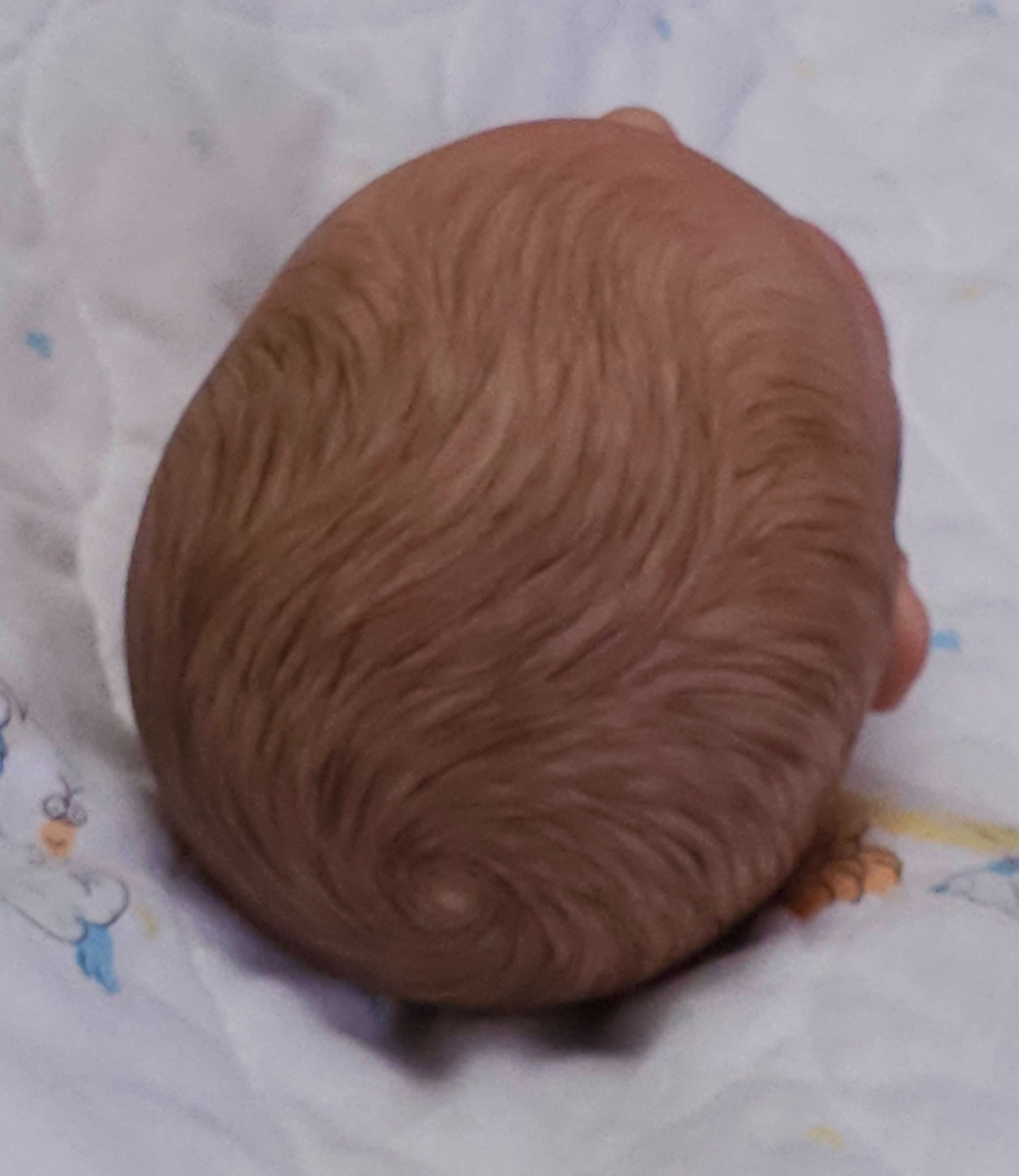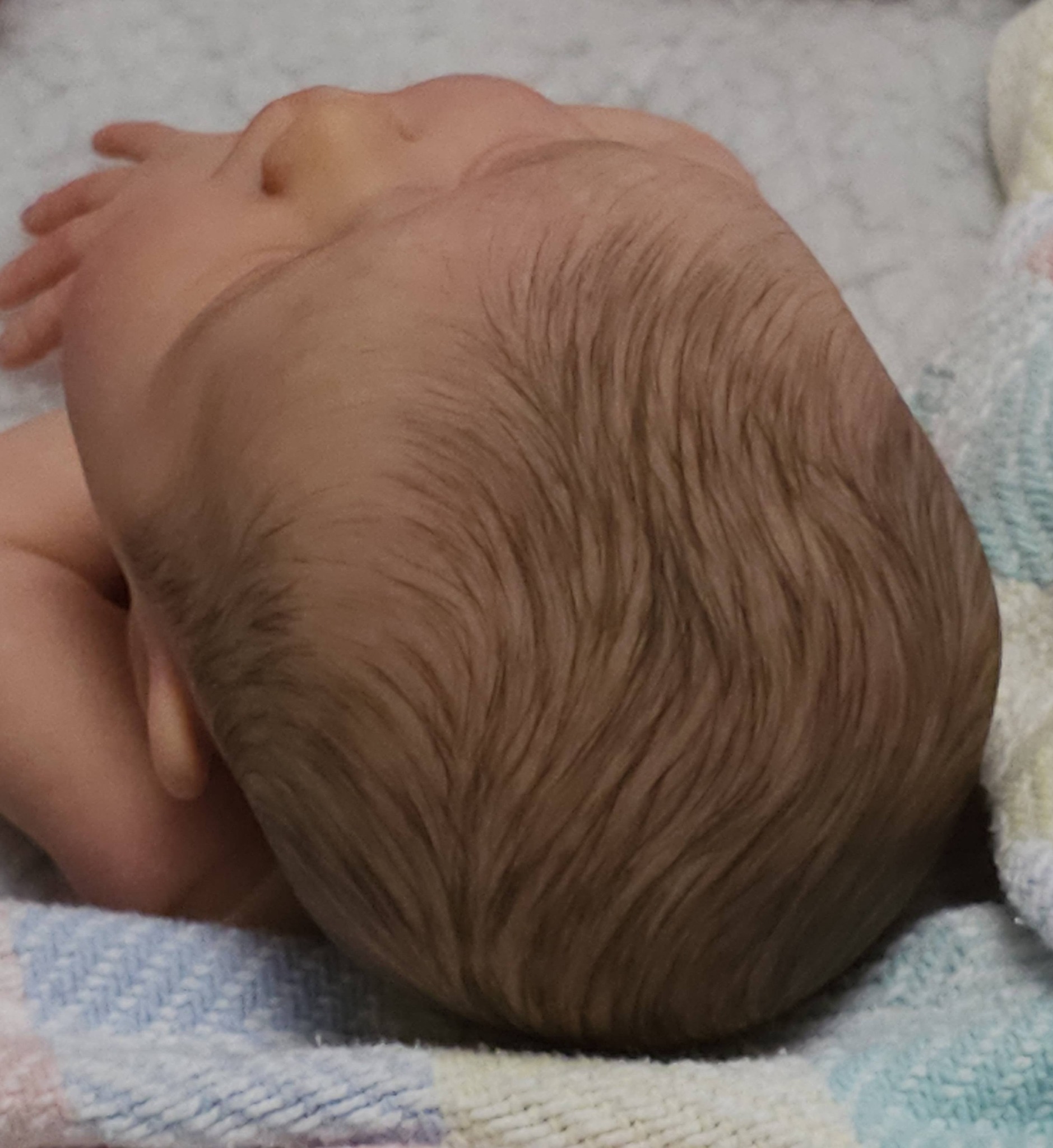 My poor little Adelaide is just a disappointing mess because I used some different products and it did not go well. Too much paint and mediums on that baby to strip now. I tried yesterday to define his hair strands a bit more with Genesis. Not sure if it helps or not…