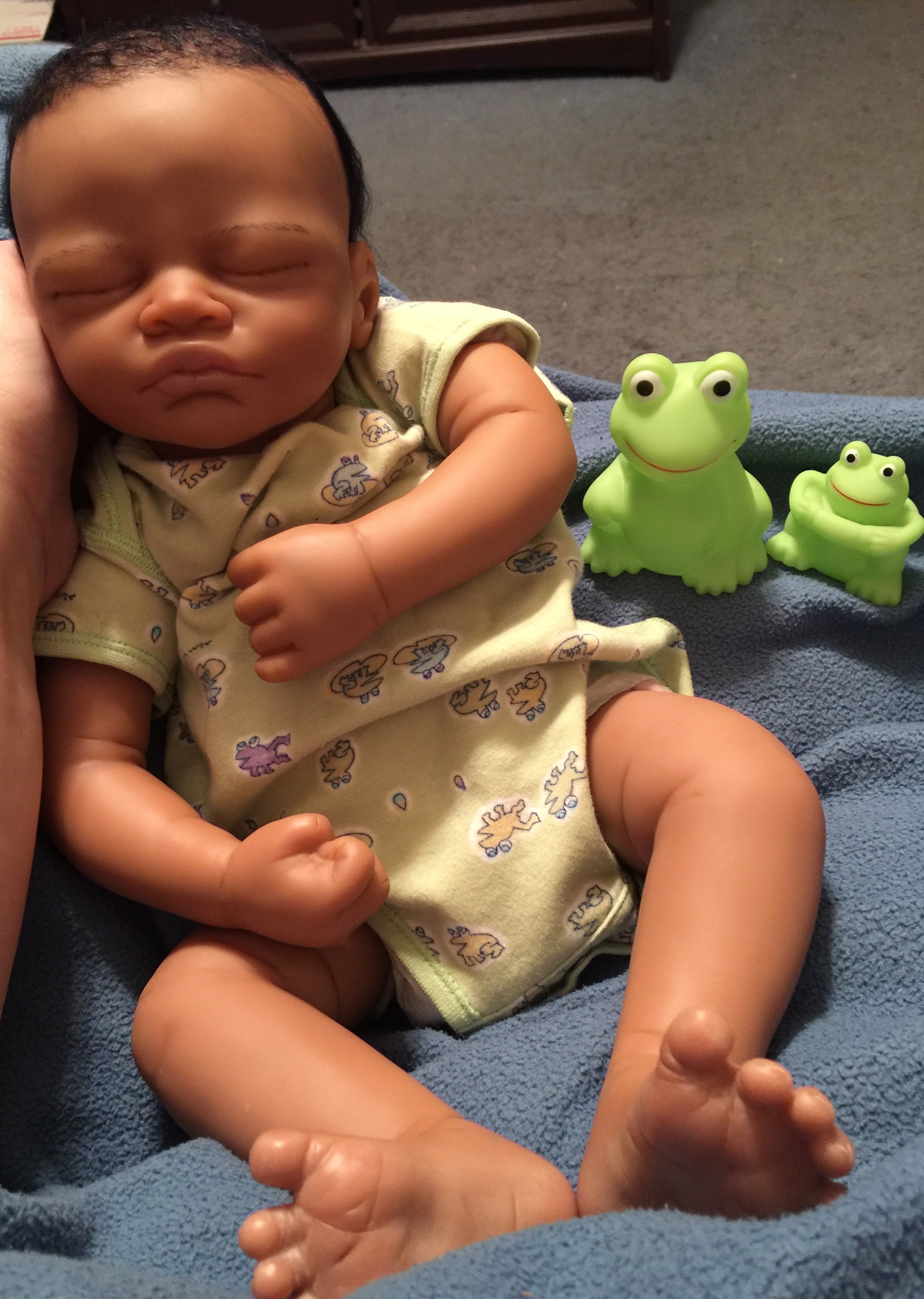 O! M! GOSH!!! My second Disney inspired REBORN baby is done!!! He’s also my first ethnic baby and I LOVE HIM!!! He’s so gorgeous!!! Inspired by Princess Tiana and Prince Naveen from the princess and the frog, here is “lil Ralphy James”