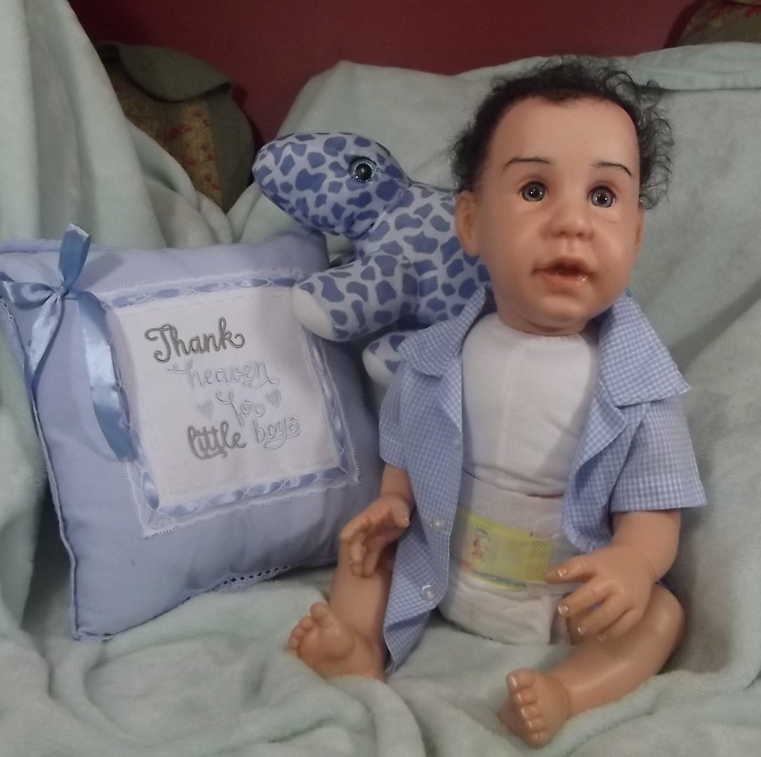 I knew it as a matter of time until the right person saw him. I just love the babies on “Little People Big World” and had to make a baby with dwarfism. He is off to Oklahoma this morning to his new mommy.
