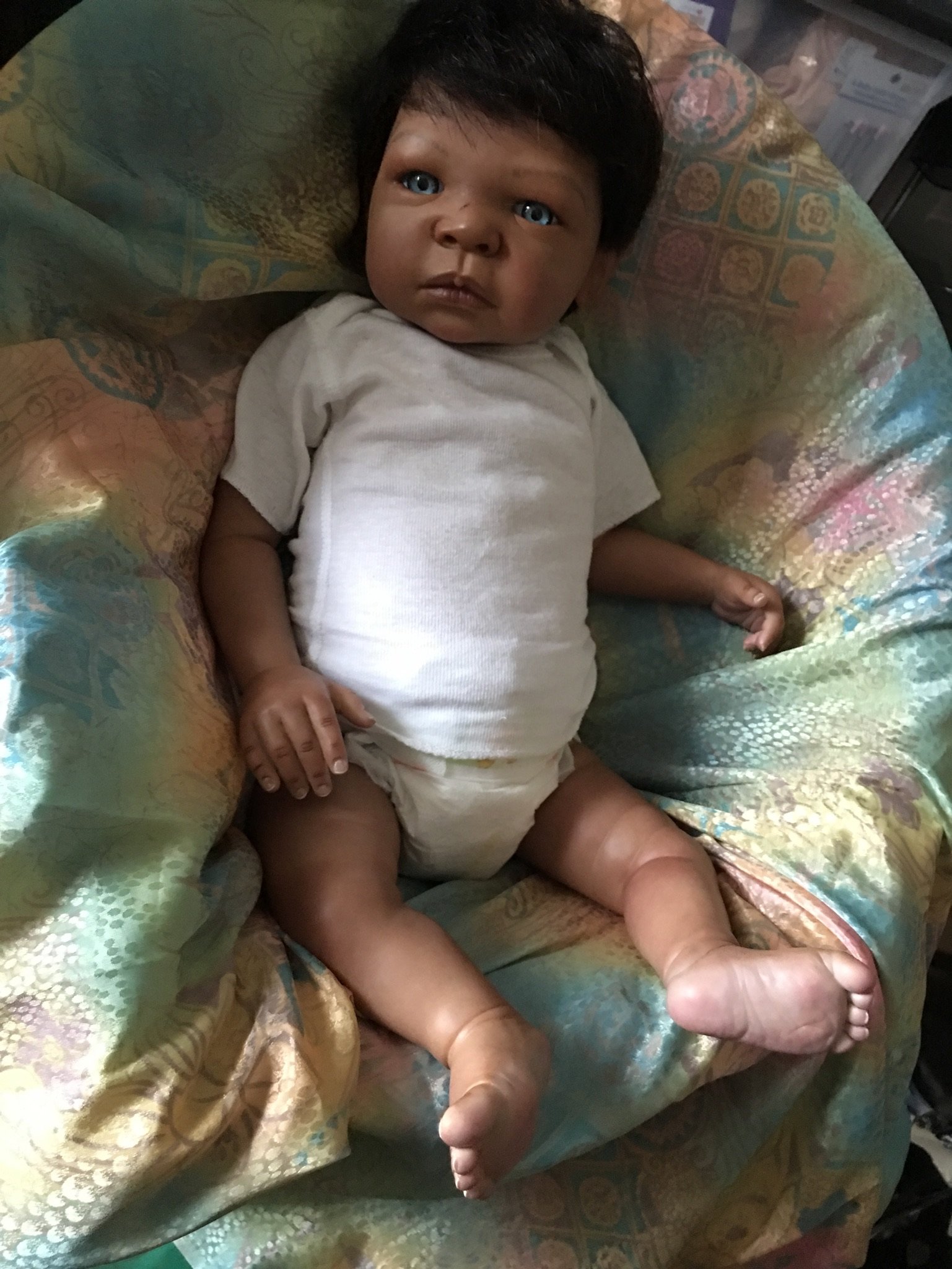 I am not very good at hair as this is only my 3rd reborn. I was able to achieve this hair by drawing directly on the paint. I used prismacolor light umber and dark umber