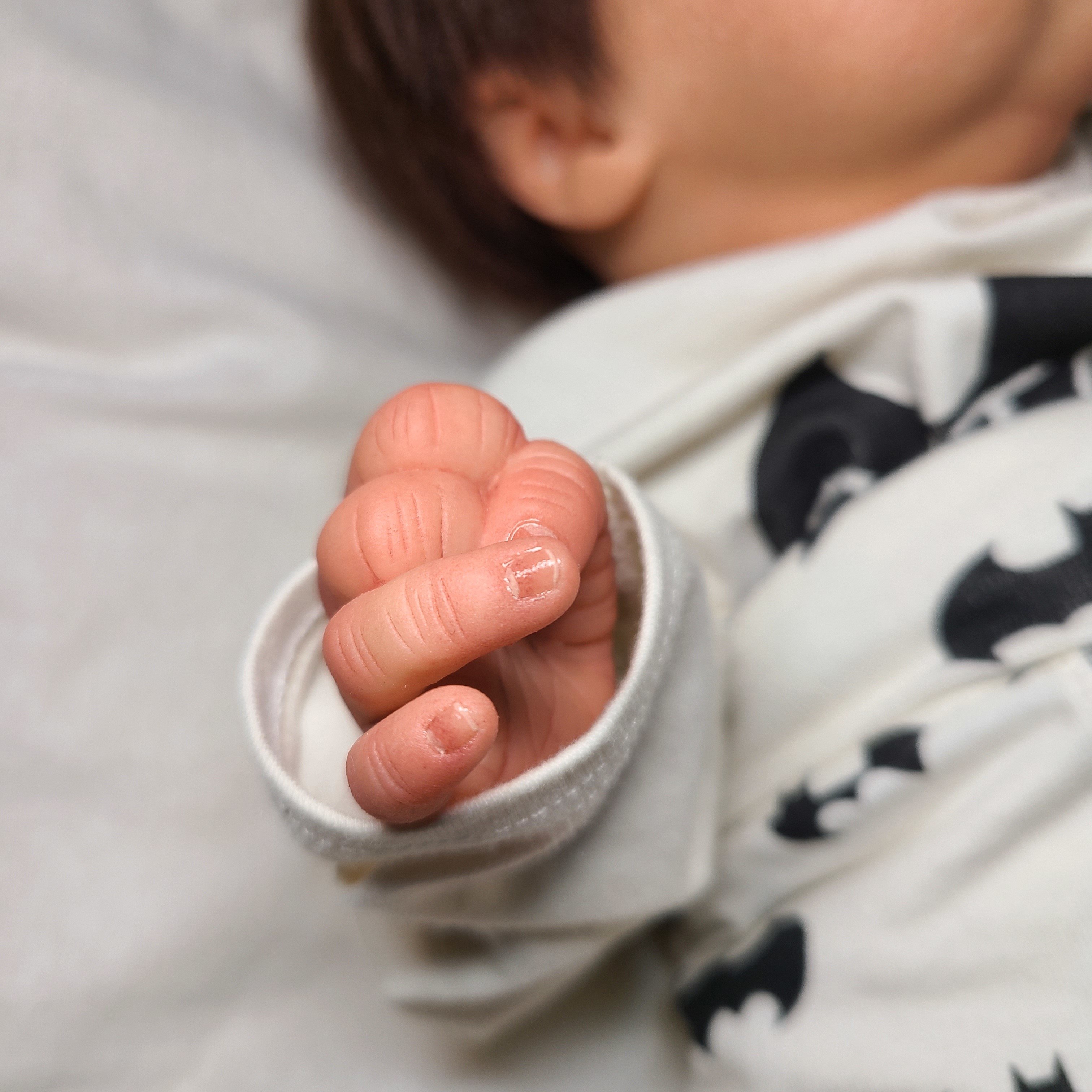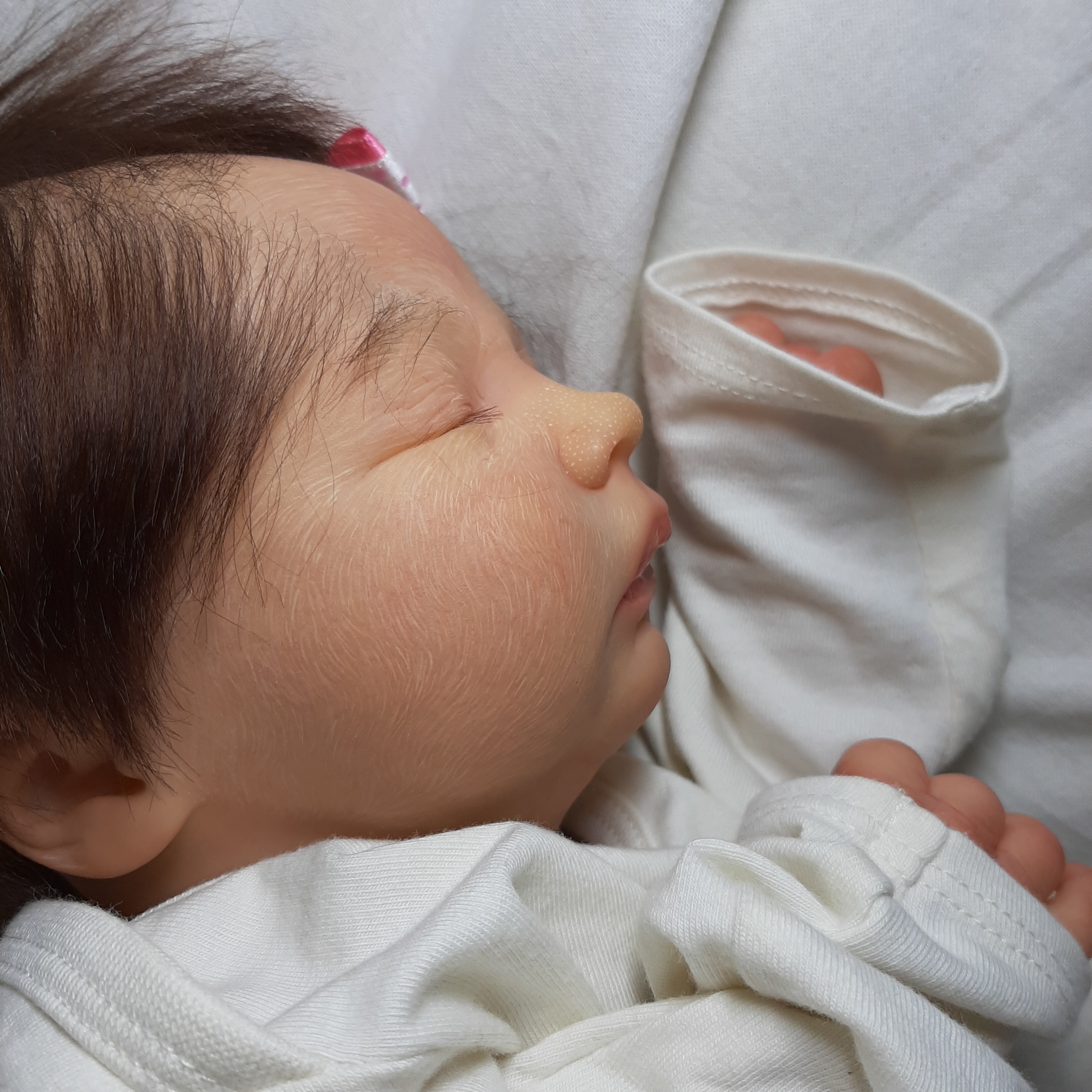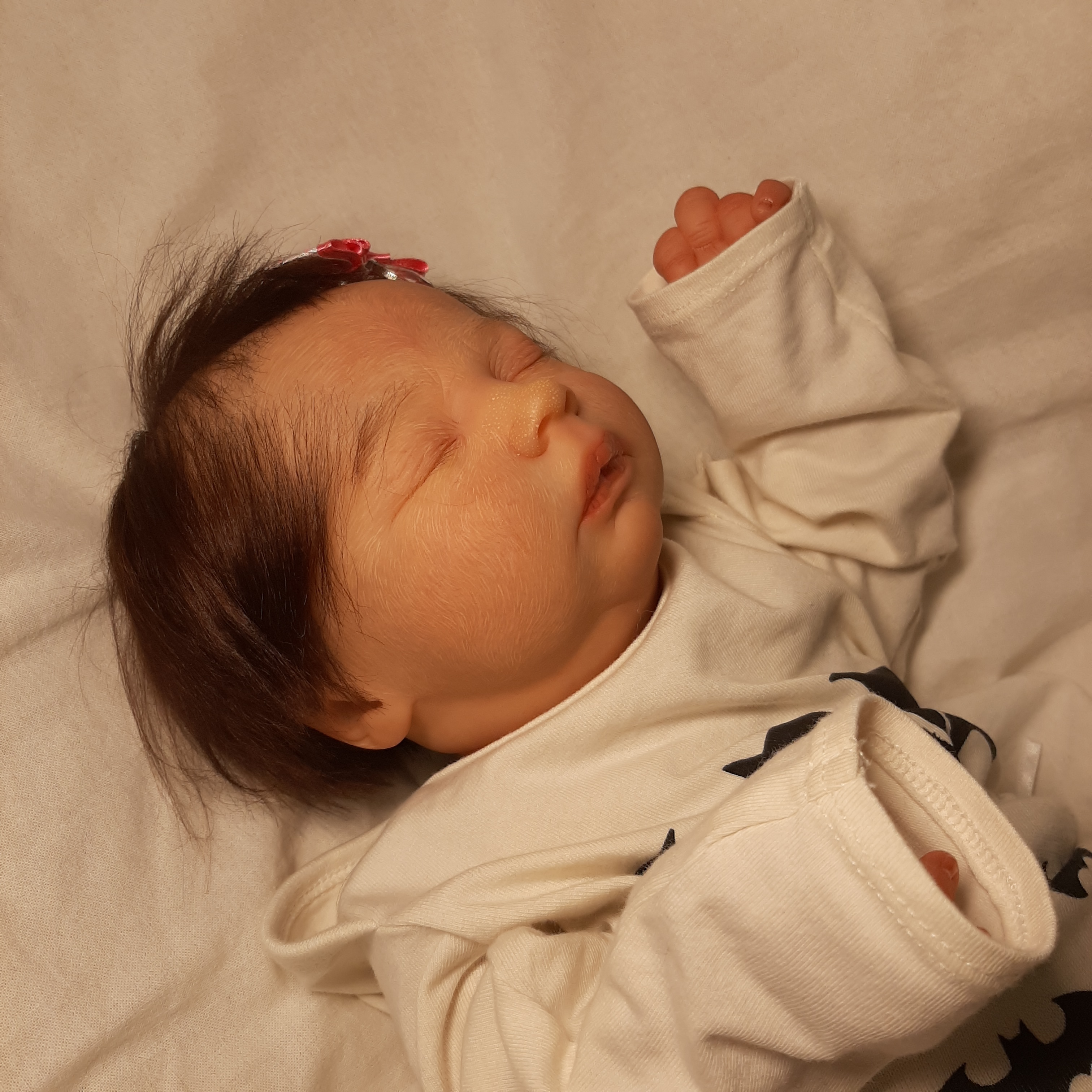 And I thought it was more real when I saw hair on my face, but it was strange because it was too thick as many people said. I will also paint the baby’s wrinkles neatly at the next production!