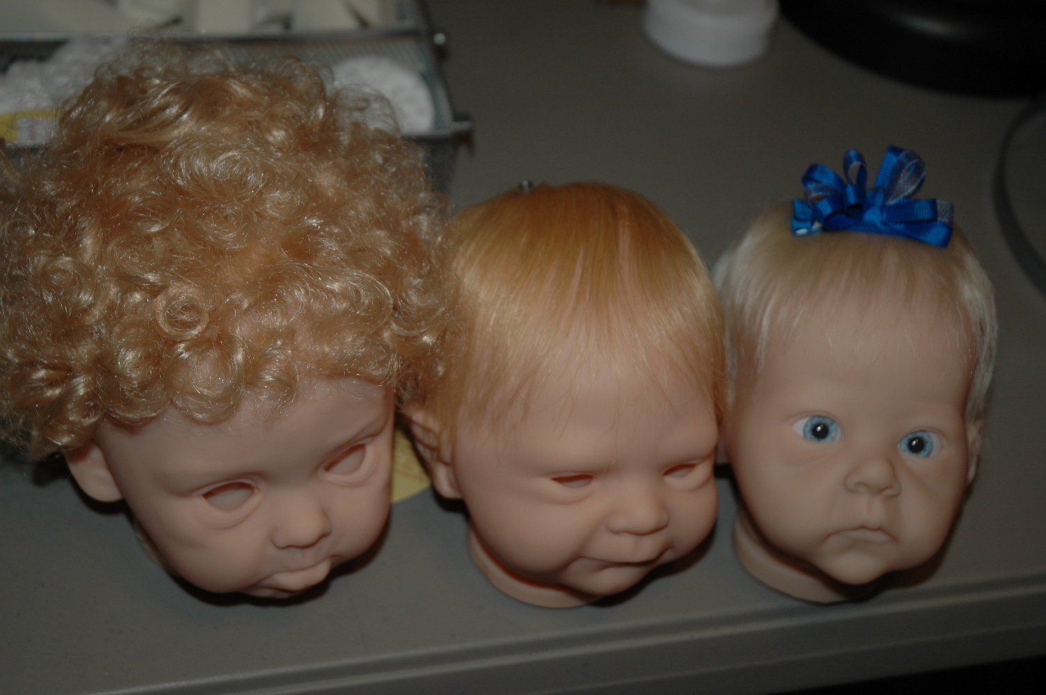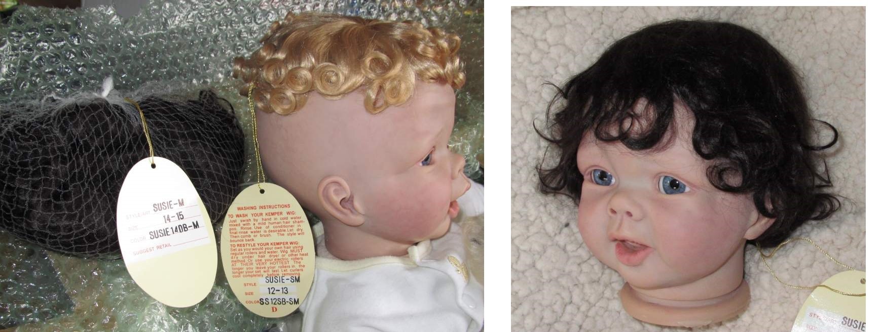 These are the ones I just received. The brown one is not glued yet. The others are on dolls that haven’t been painted. All came from Dolls So Real except the curly one that came from kemper.