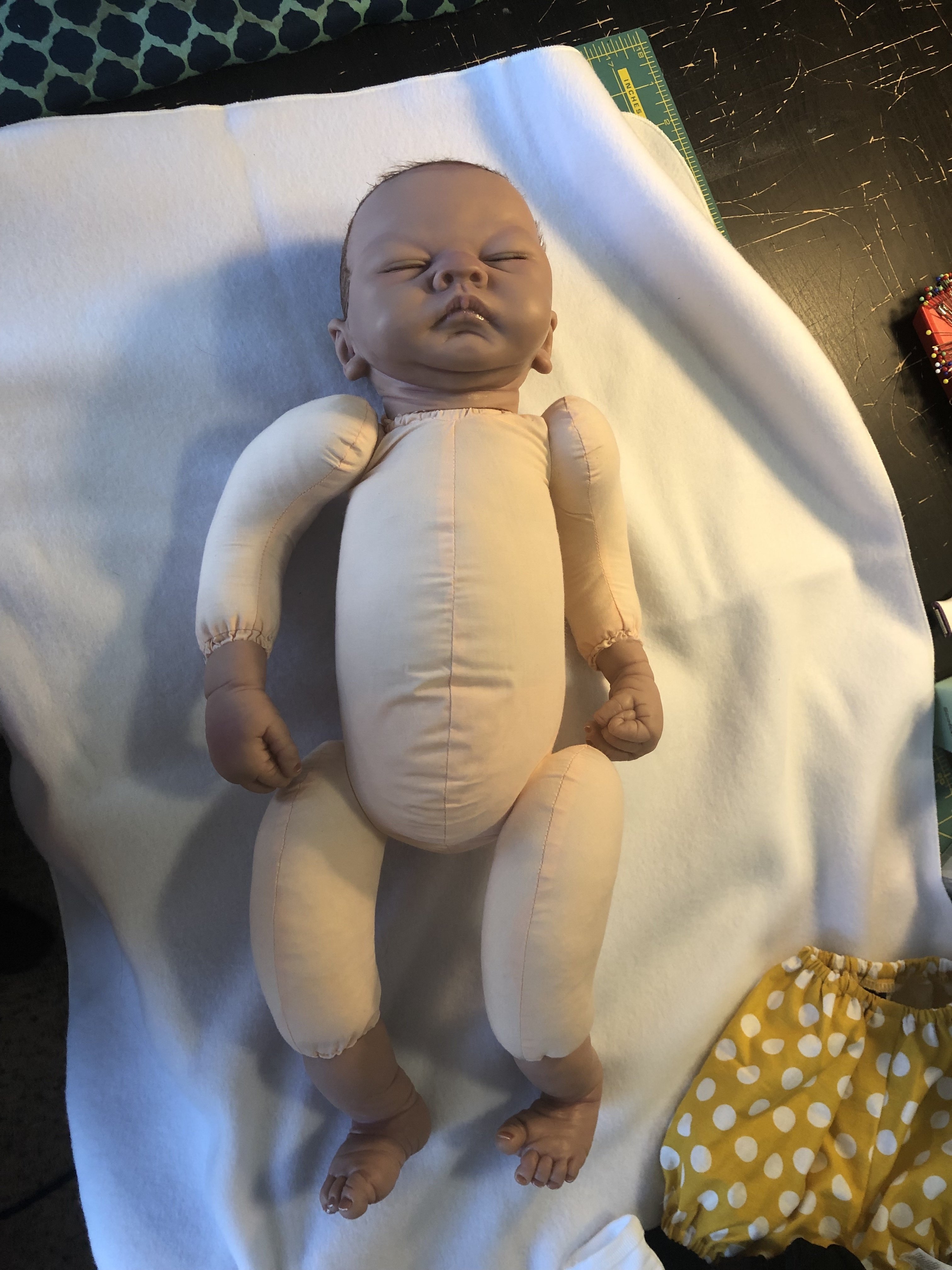 I know lots of other people are liking the 1/4 limbs, but I would have all my dolls be full vinyl if I could! I may still end up adding torsos to these dolls. They’re not for cuddling, they are for modeling all the baby clothing I sew. The less visible fabric the better!