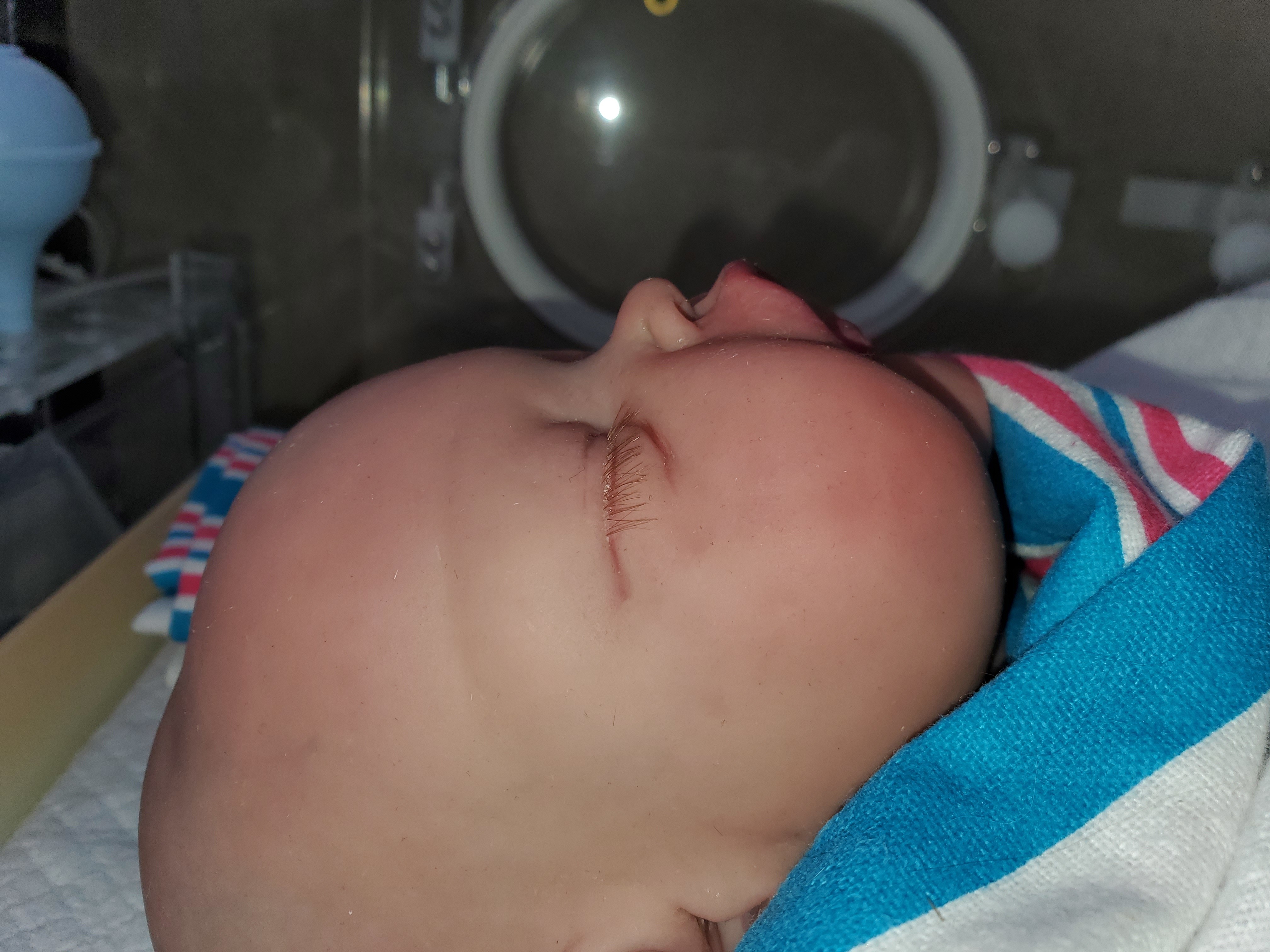 In the meantime, sweet little peanut! His face is not ever going to be the way it was before but it is very minimal scarring.