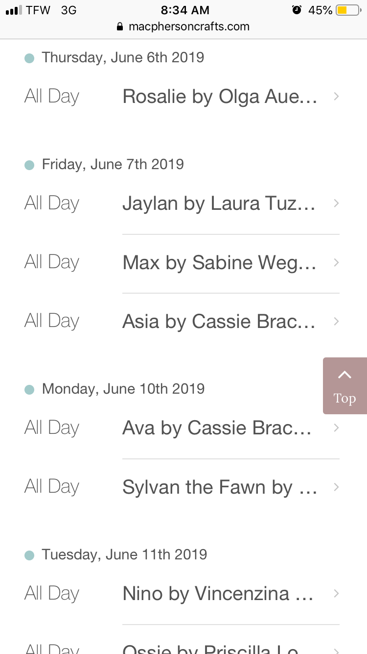 They ALL show on the calendar for June. Most say “preorder begins soon” when you click on them. I sure hope they don’t all start this month. What does MacPherson’s events calendar mean when it lists a kit on a certain day?